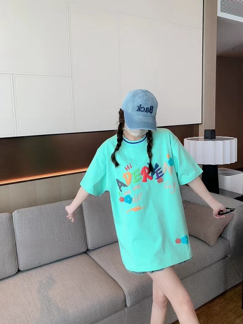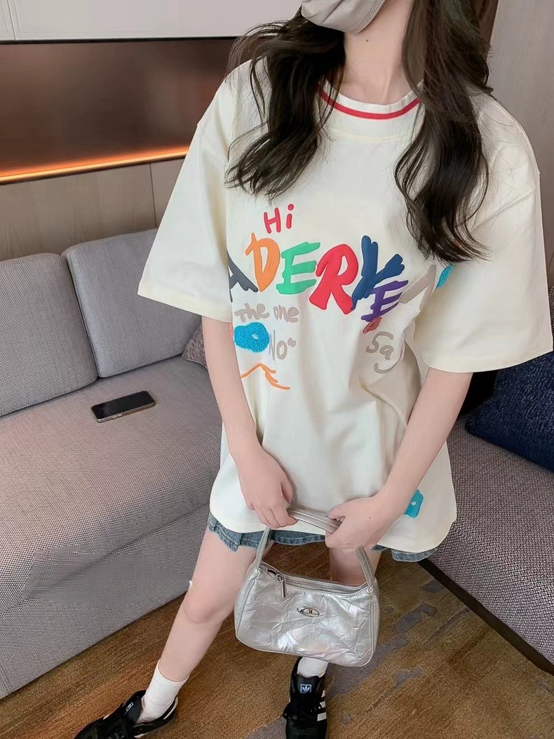 即墨现货 ader春夏圆领短袖女潮牌街头宽松慵懒风情侣t恤上衣