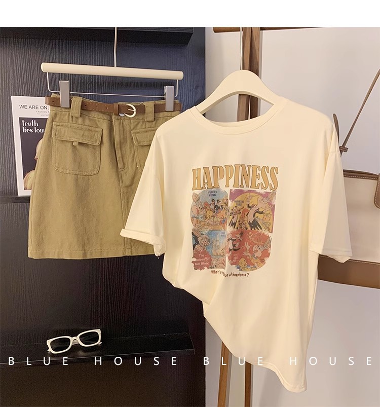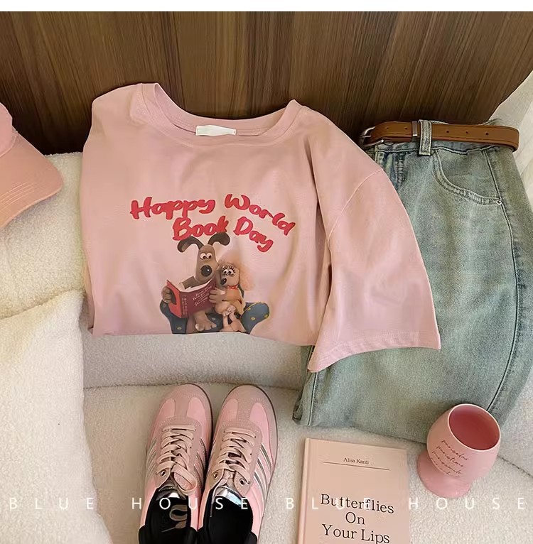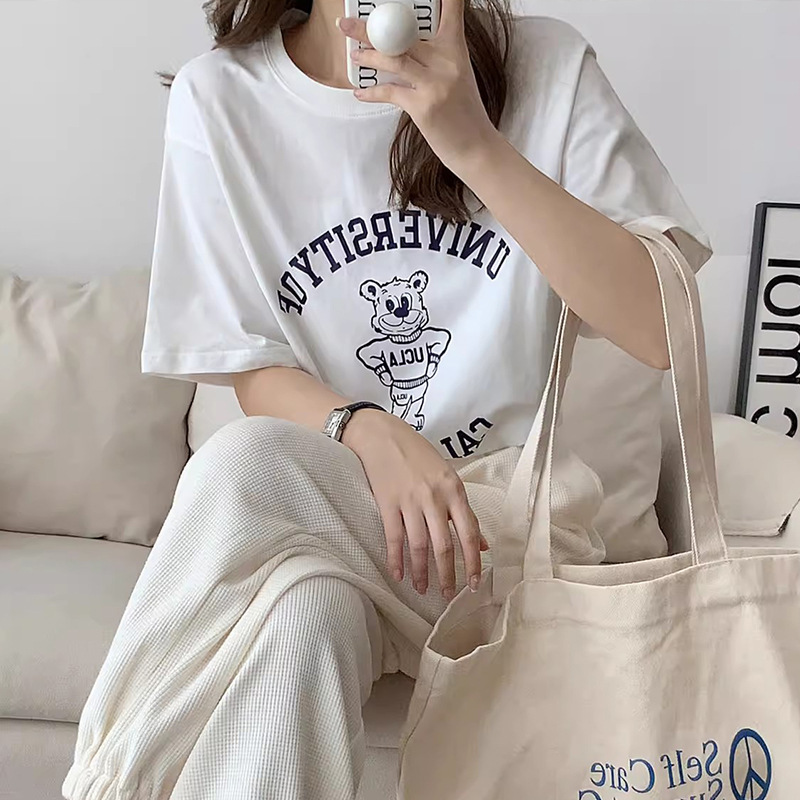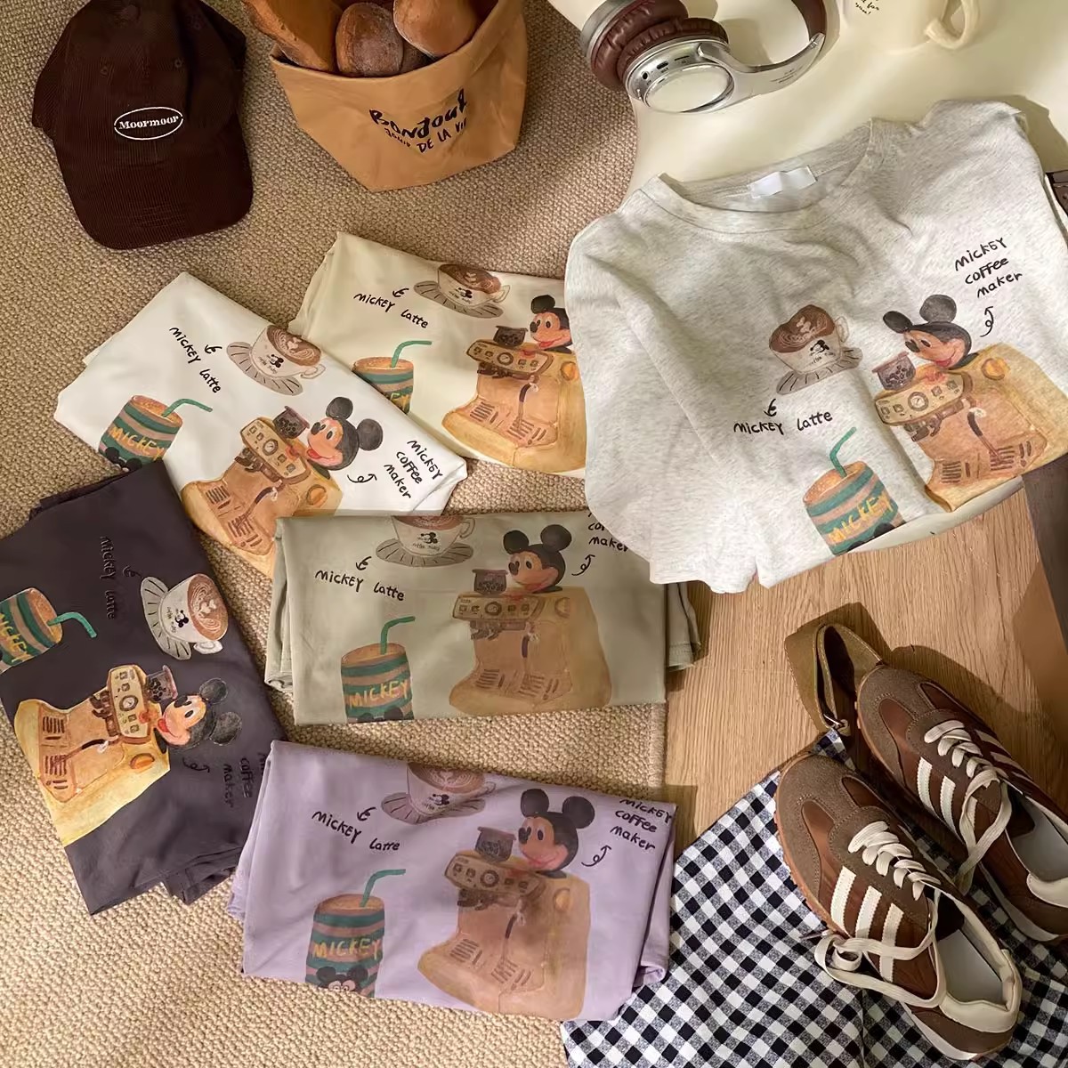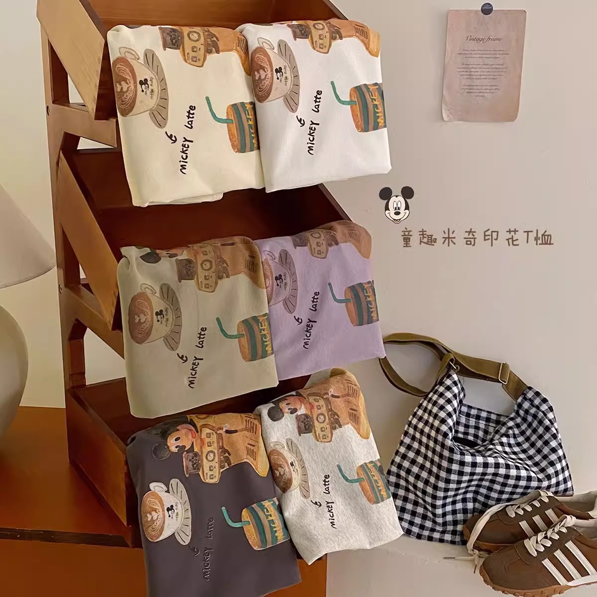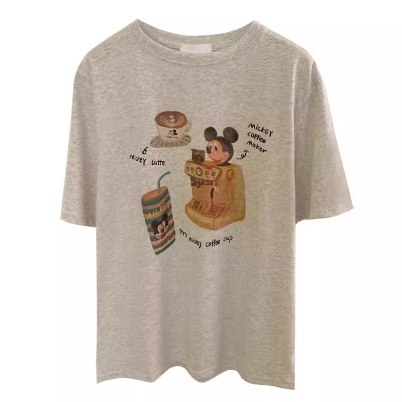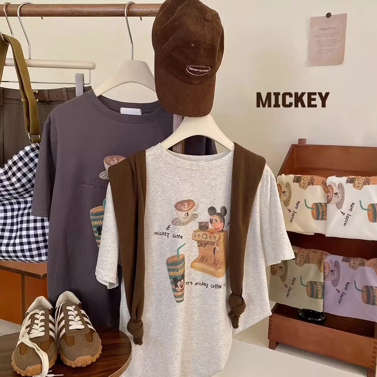 春夏韩国chic咖啡米奇印花短袖T恤女ins纯棉宽松休闲洋气半袖上衣