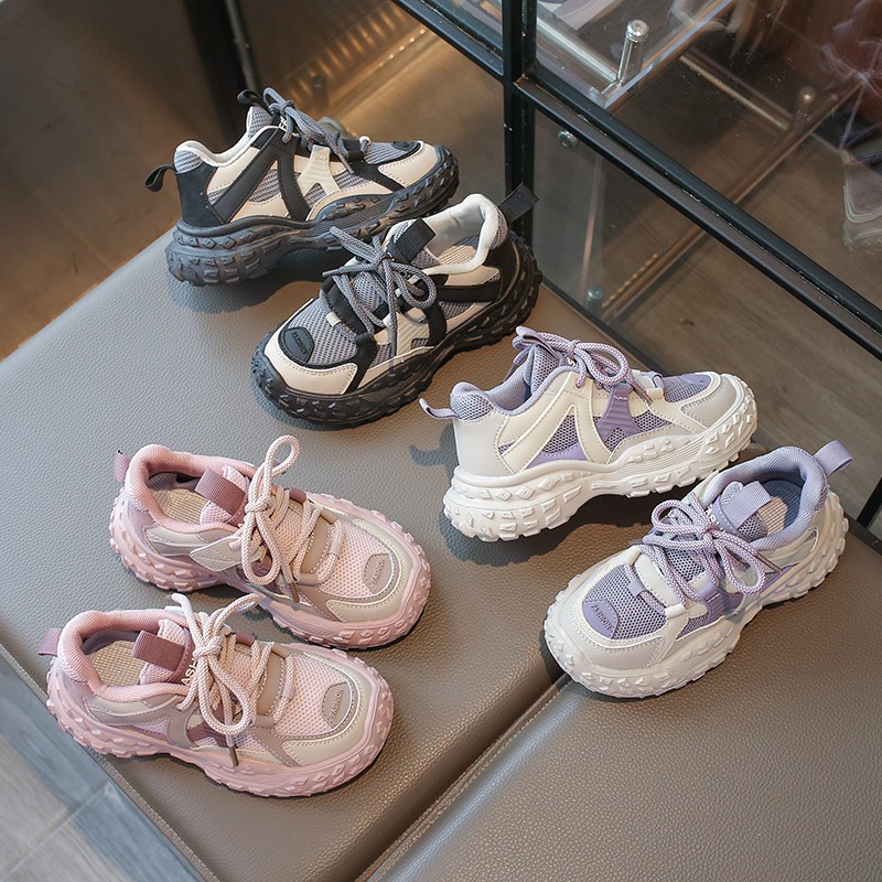 女童运动鞋2025年春秋新款软底网面老爹鞋轻便透气儿童跑步鞋软底