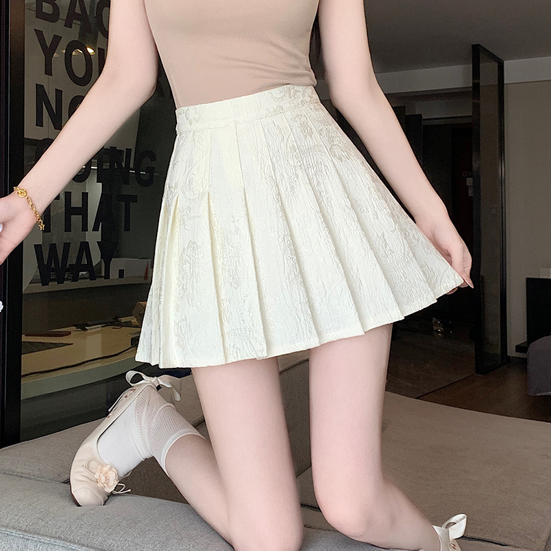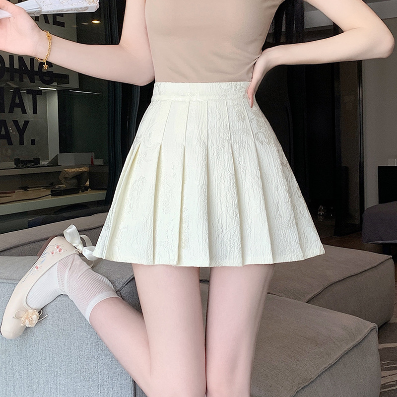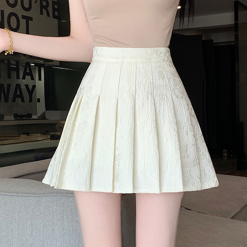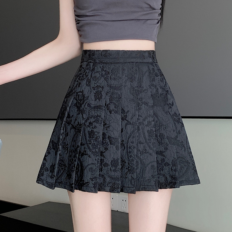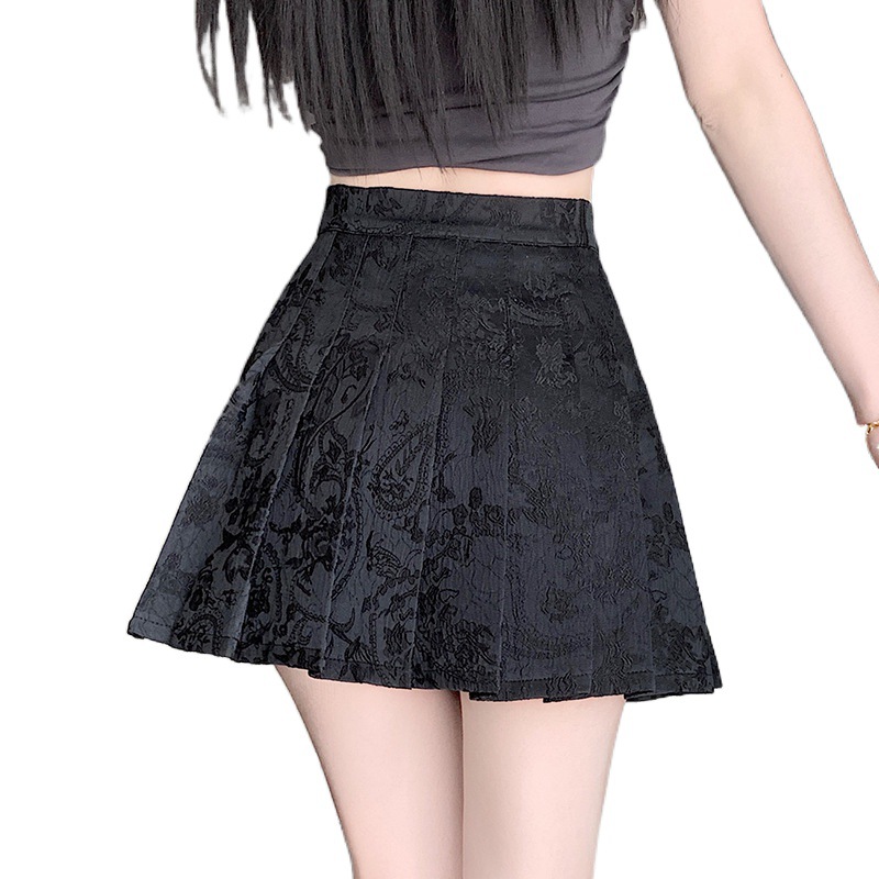实拍新中式国风提花百褶裙女夏季高级感气质今年流行半身裙短裙