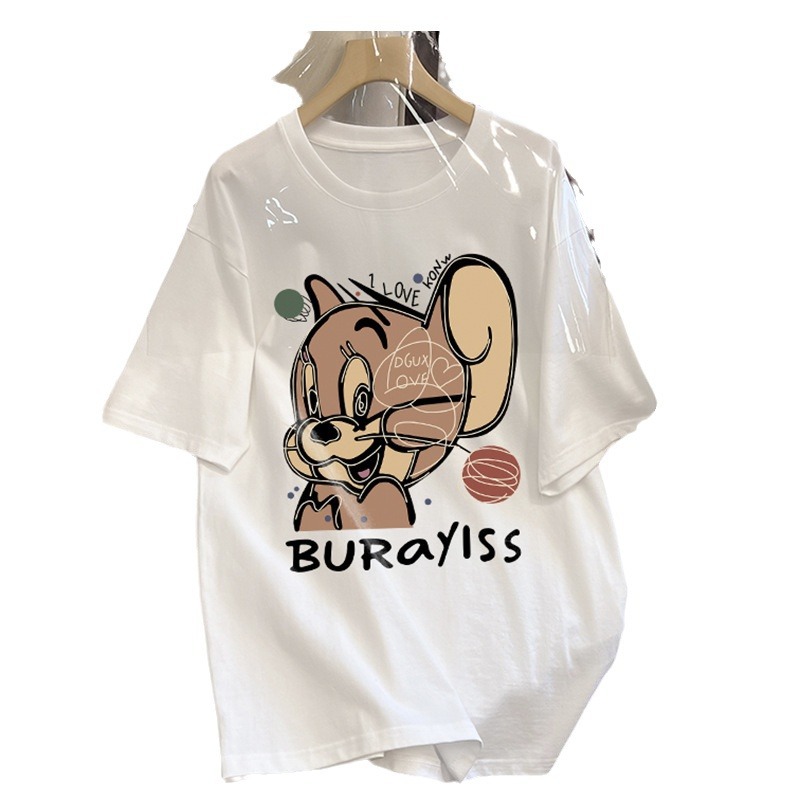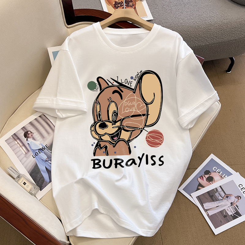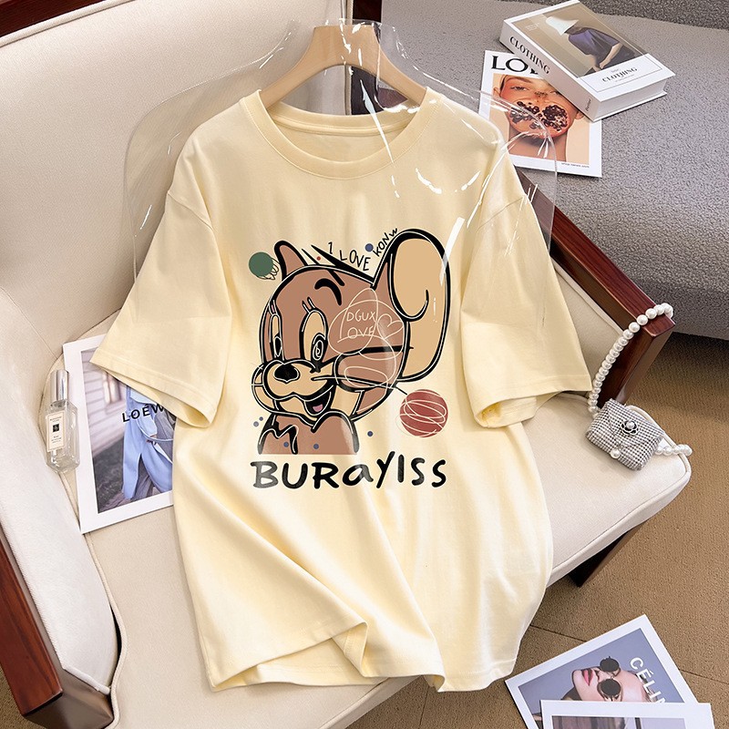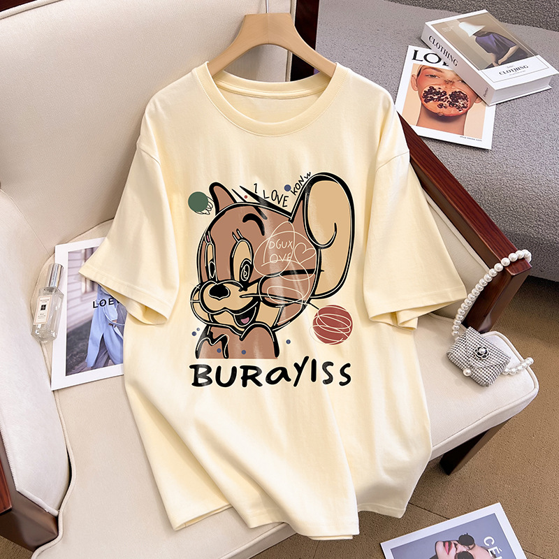 精梳棉短袖t恤女装夏季新款宽松大码卡通减龄正肩半袖圆领上