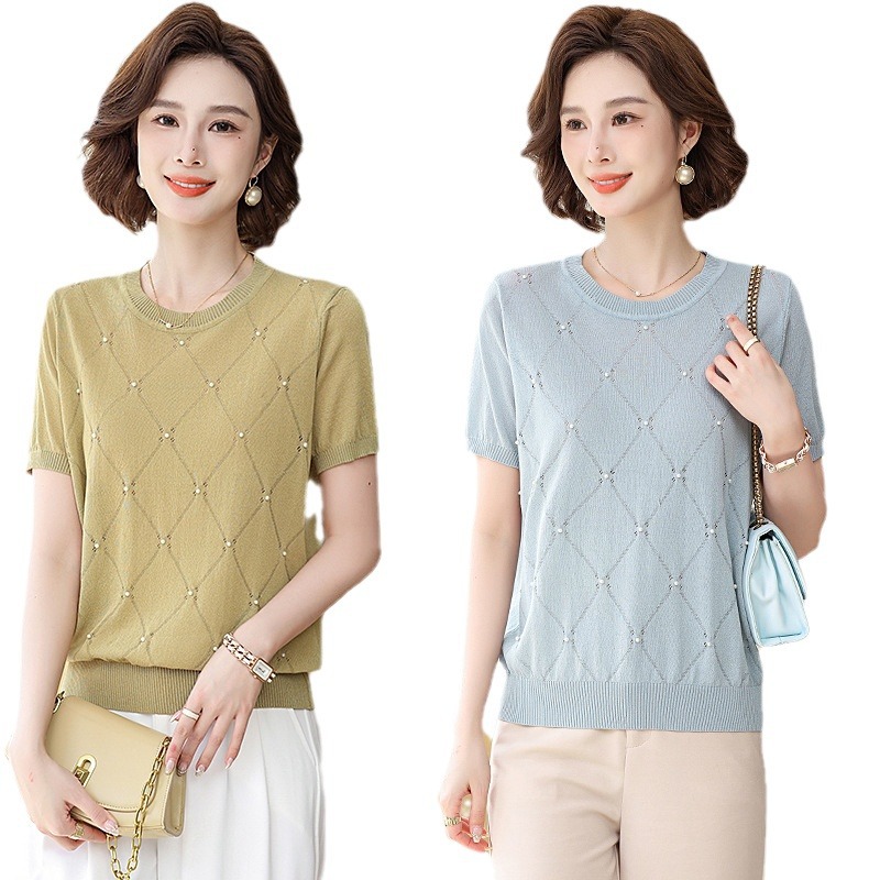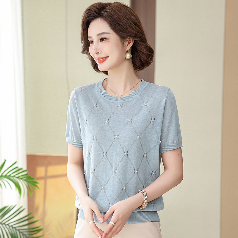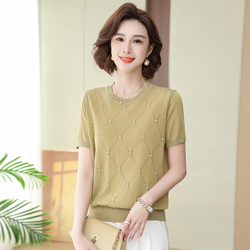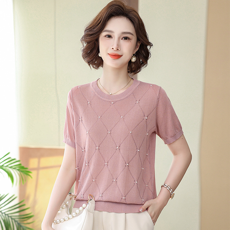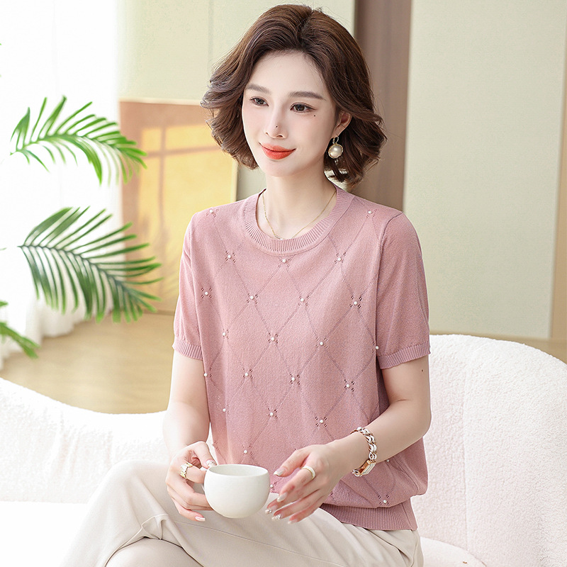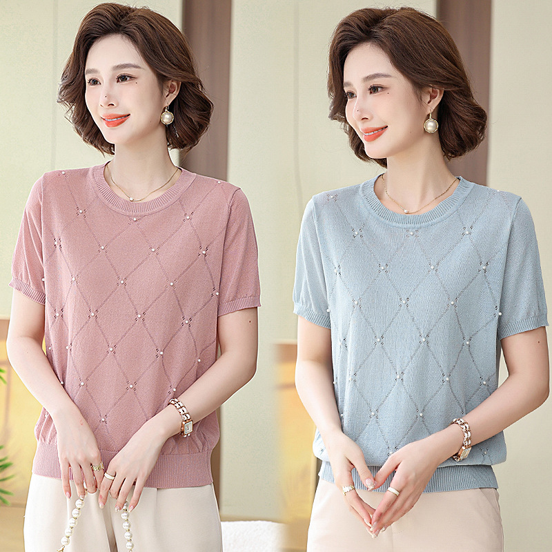 年夏季新款T恤宽松显瘦圆领短袖妈妈装时尚休闲中老年女装潮