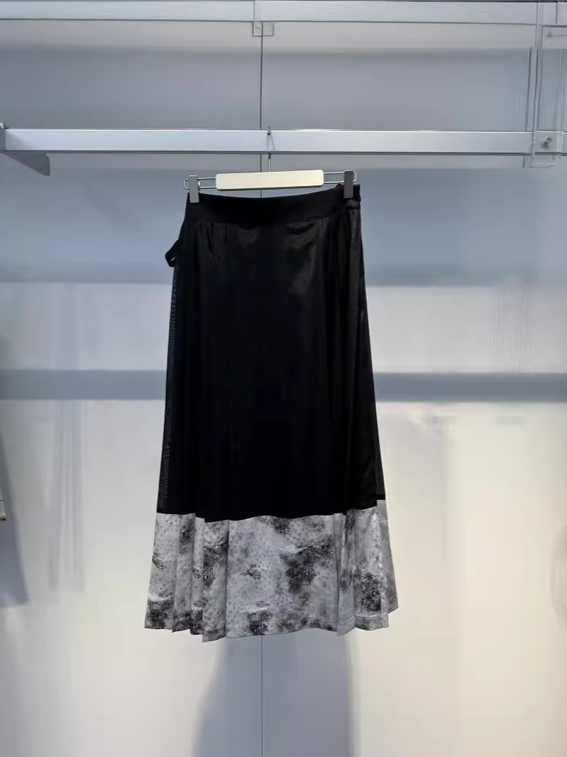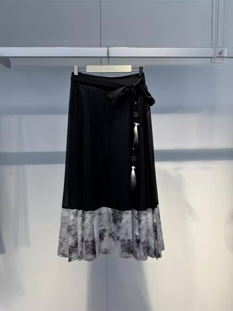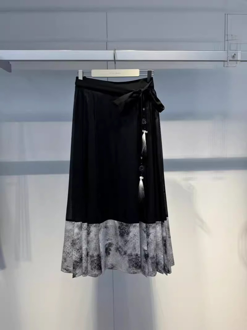 春季新款女装复古高级感国风马面裙A字百褶半身裙 1GFE232704
