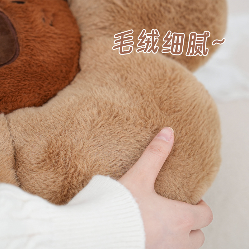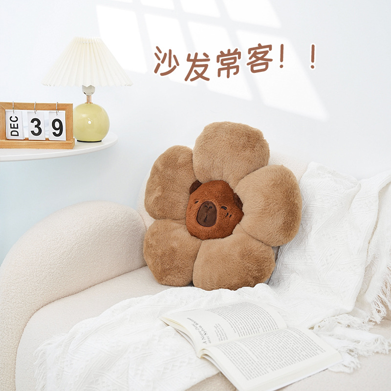 原创花朵卡皮巴拉宿舍沙发抱枕卡通动物座椅靠枕冬季毛绒柔软靠垫
