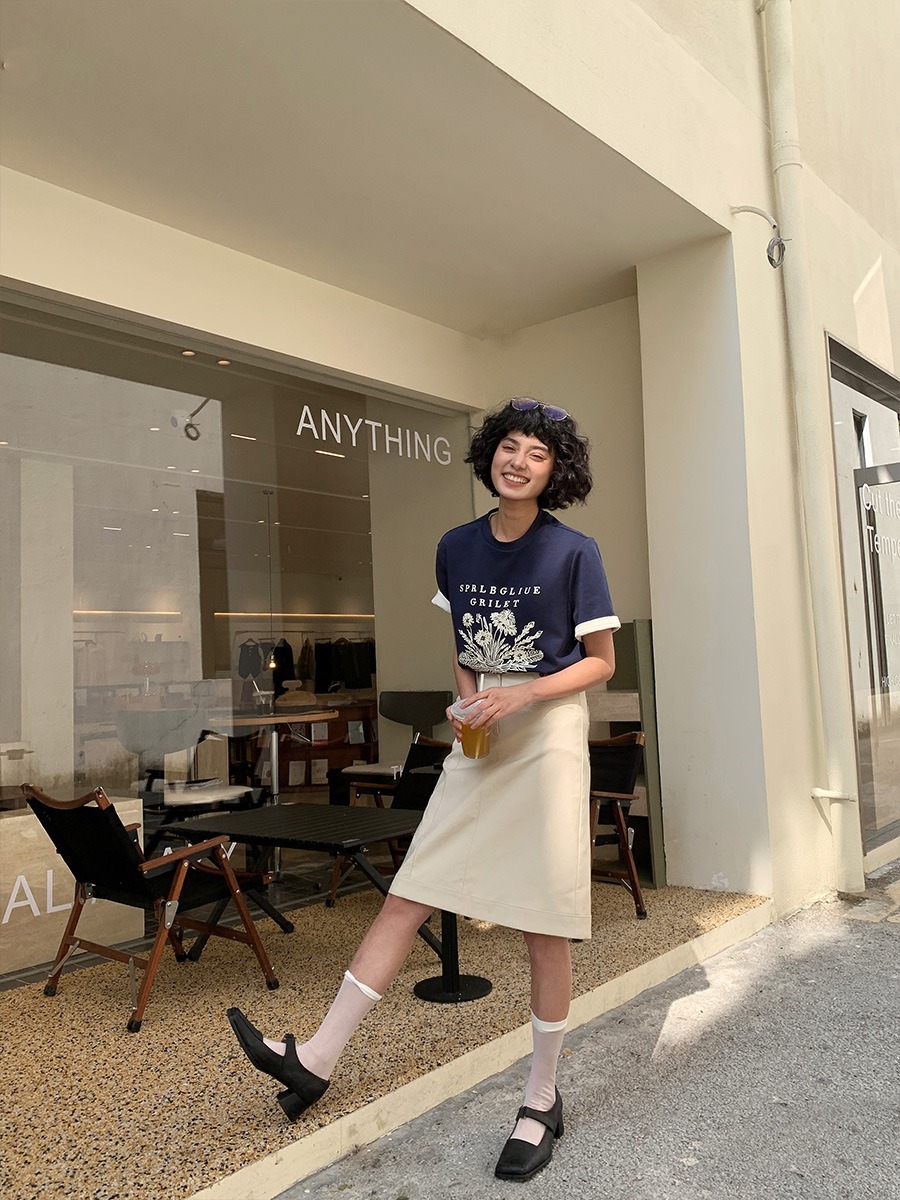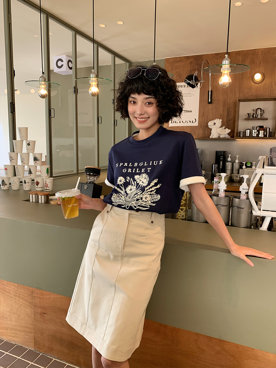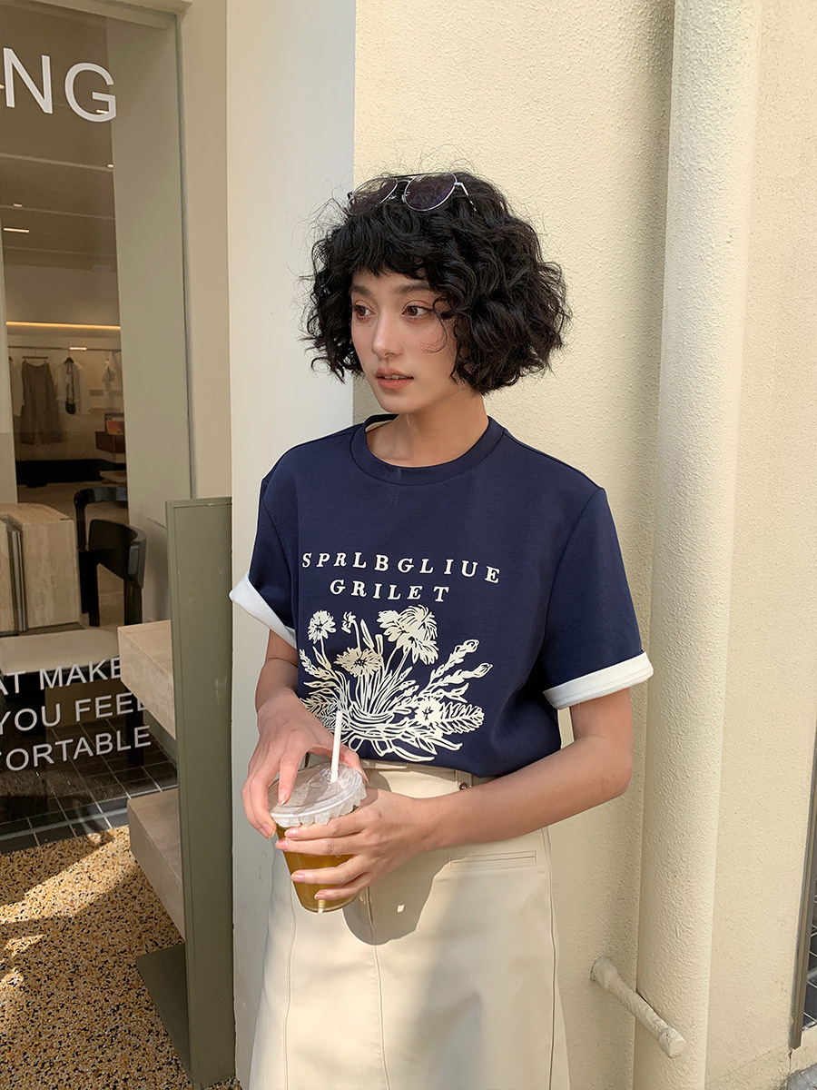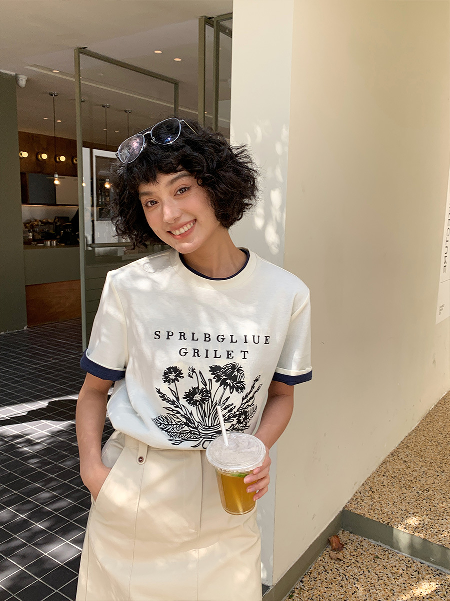 正肩印花圆领百搭短袖T恤女夏季棉体恤女