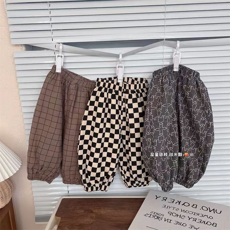 夏季男女童装休闲裤宝宝洋气儿童个性潮牌卡通棋盘格子防蚊灯笼裤