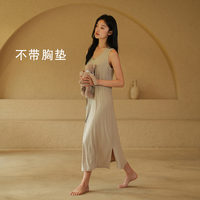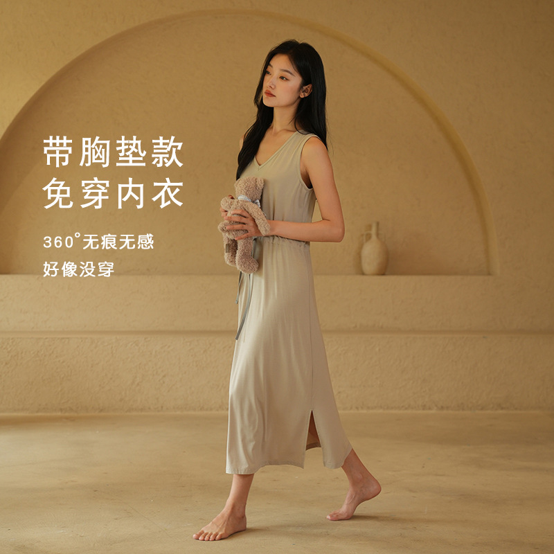 莫代尔睡裙女夏季吊带性感薄款宽松长款高级感带胸垫夏天背心睡衣