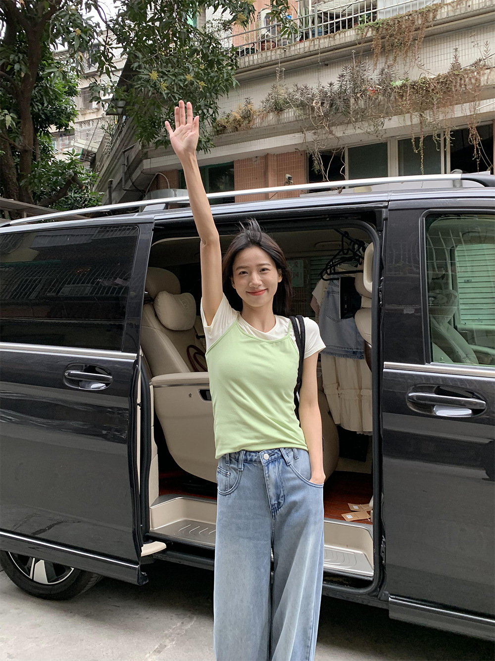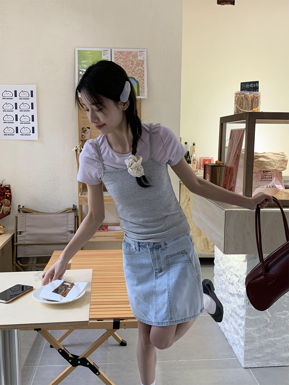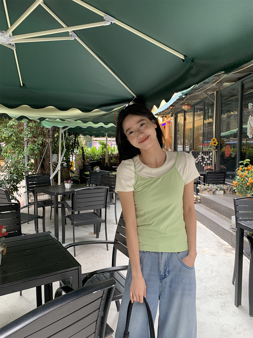 新款春季ins甜美百搭吊带+t恤两件套减龄显瘦上衣套装女