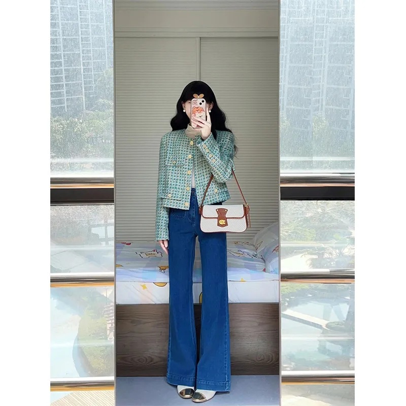 微喇叭牛仔裤女2025年春秋季新款复古马蹄裤弹力高腰显瘦拖地长裤