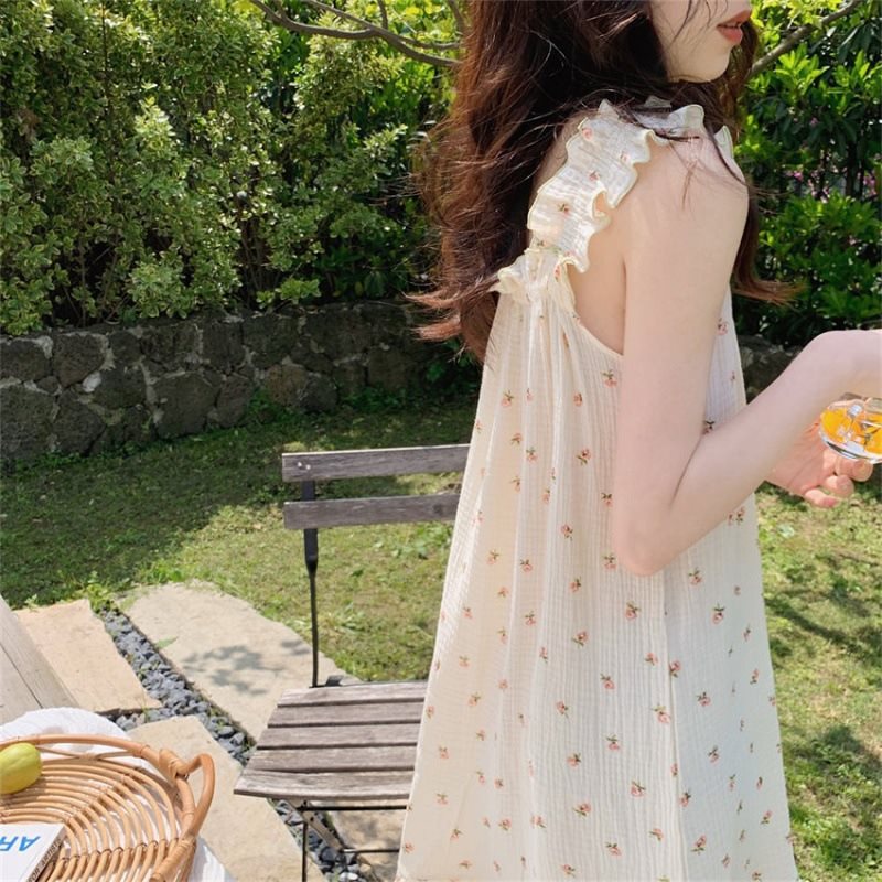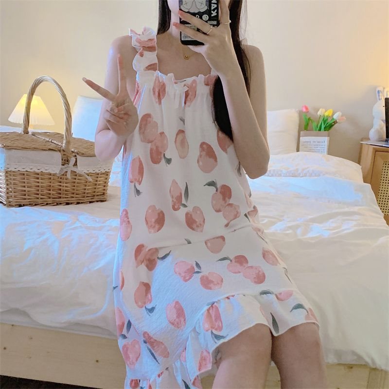 韩系纯欲风睡裙夏女可爱法式薄款可外穿吊带裙水蜜桃睡衣家居服潮