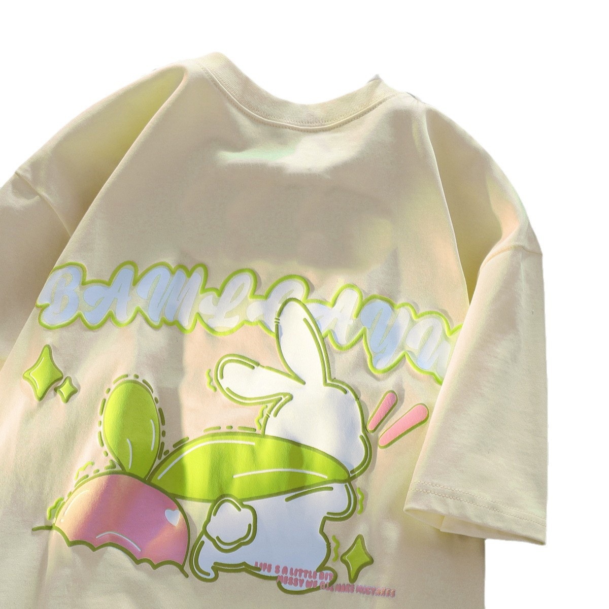 短袖t恤女纯棉宽松大码韩系可爱圆领女装体恤趣味兔子夏季情侣装