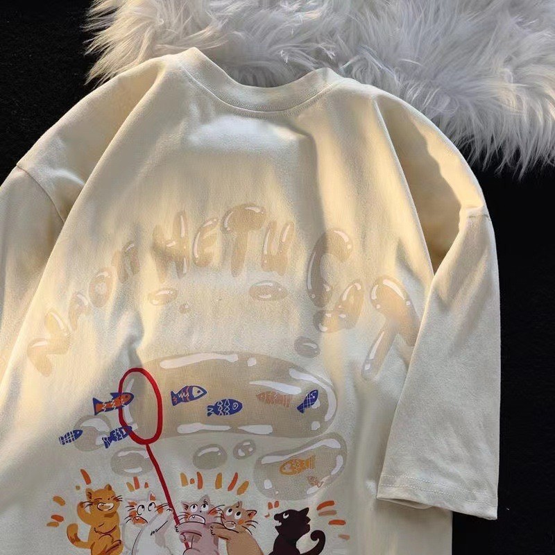 港风T恤男夏季潮流新款衣服宽松半袖体恤上衣设计感小众潮