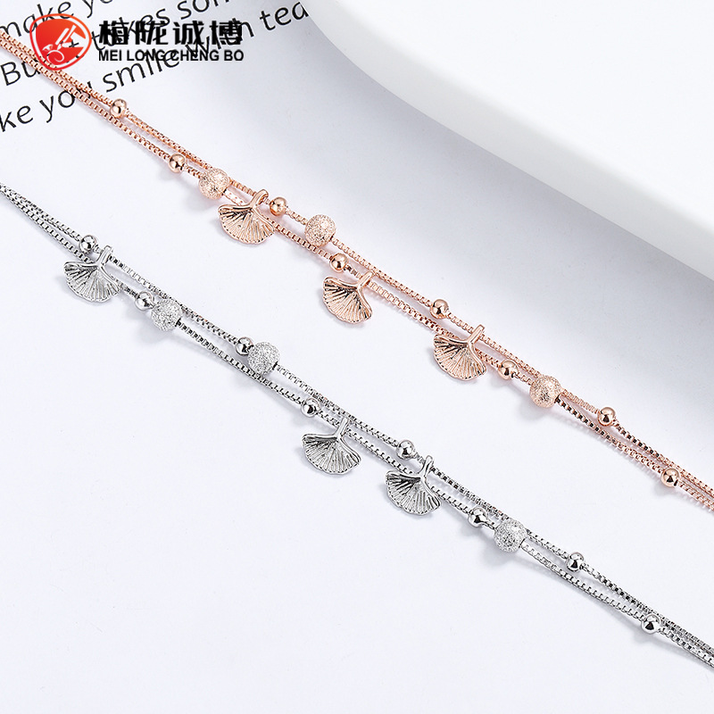 925纯银三生有杏手链情人节礼物个性设计银杏磨砂珠时尚百搭手链