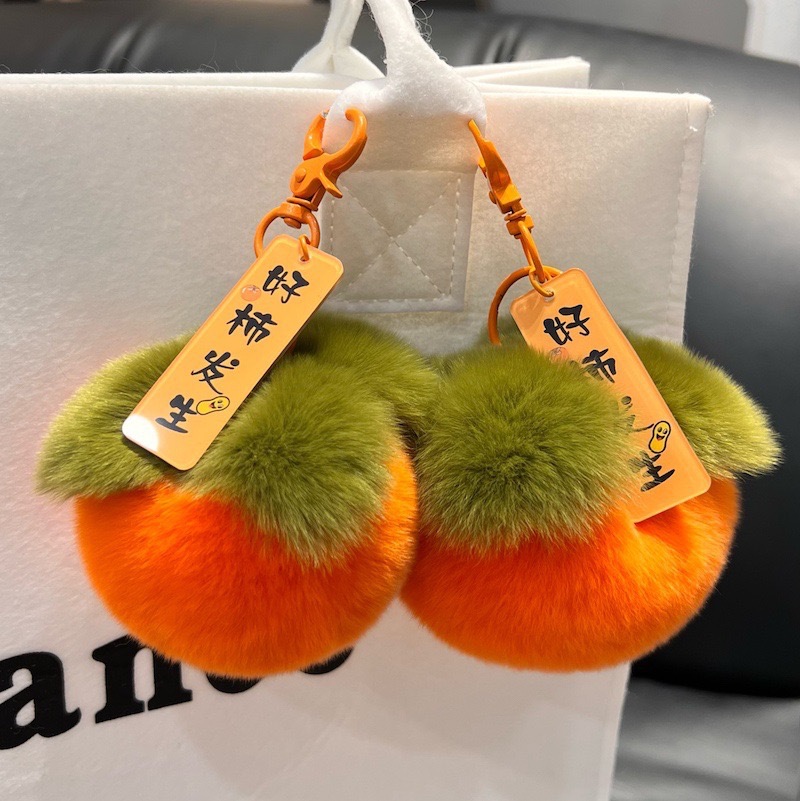 【好事发生】仿獭兔毛小柿子挂件毛绒汽车钥匙扣挂饰网红包包挂件