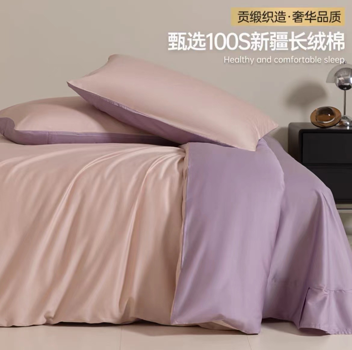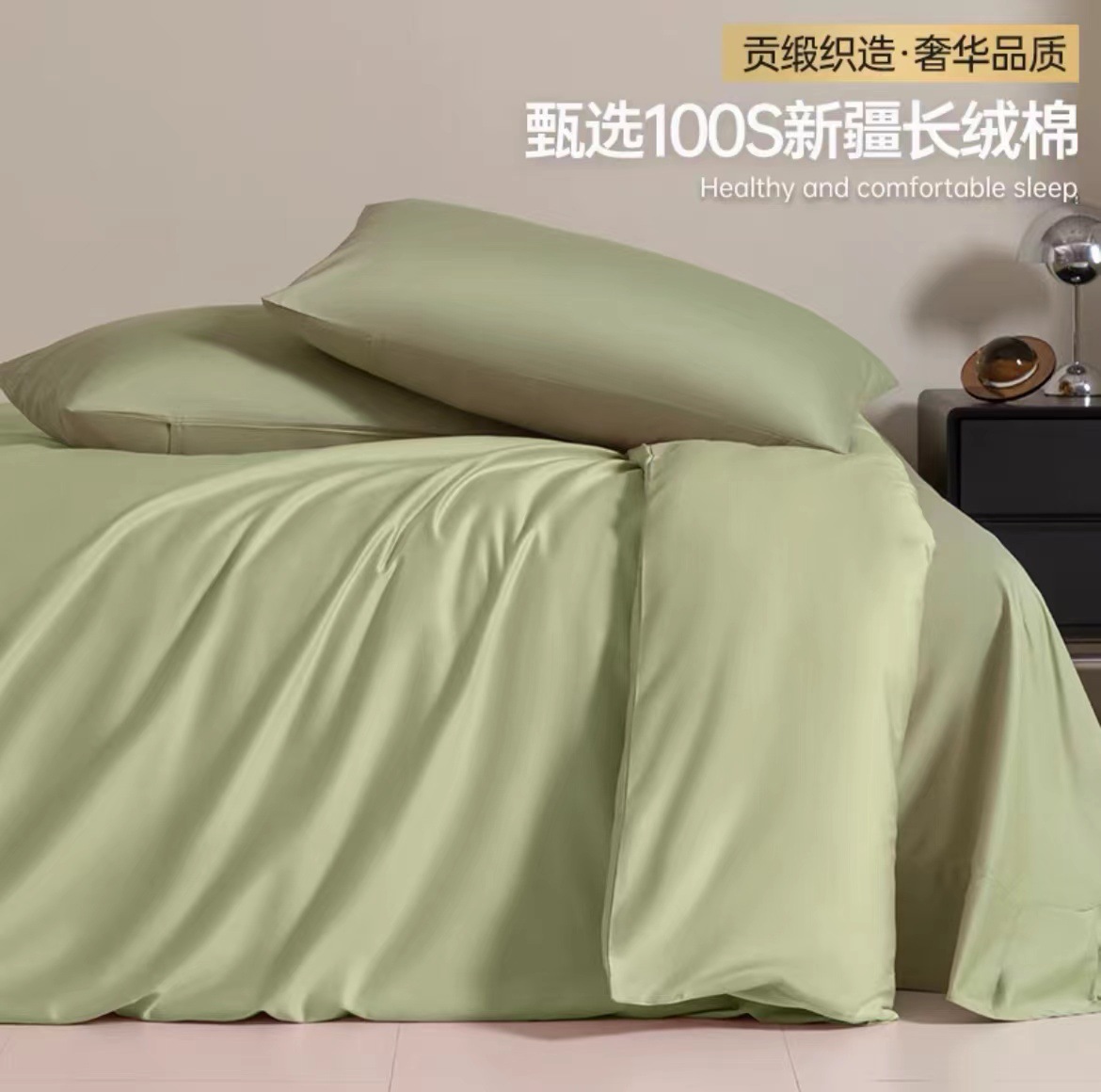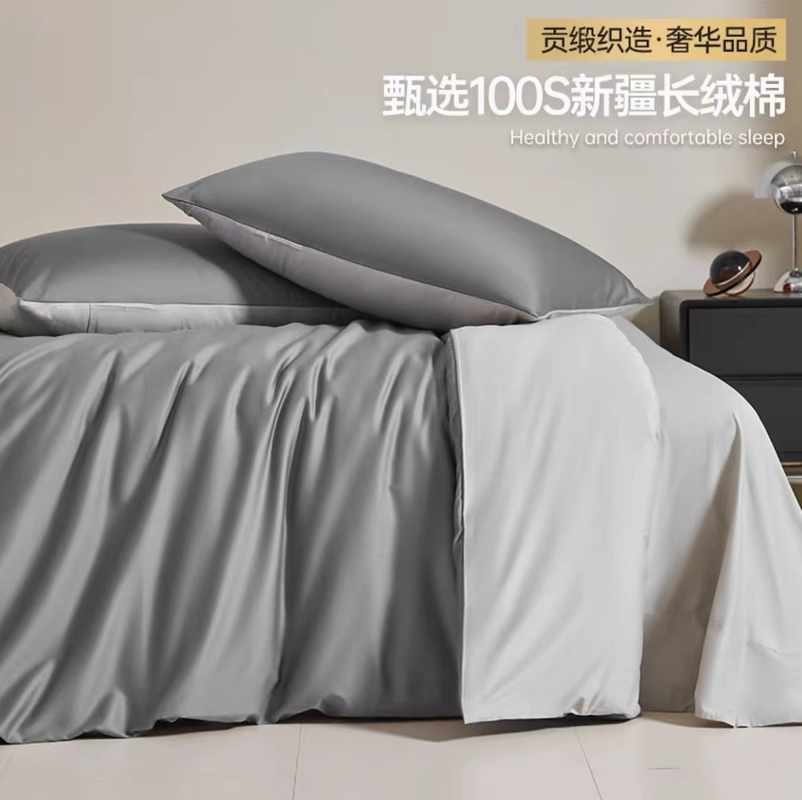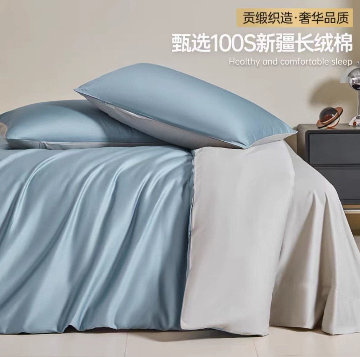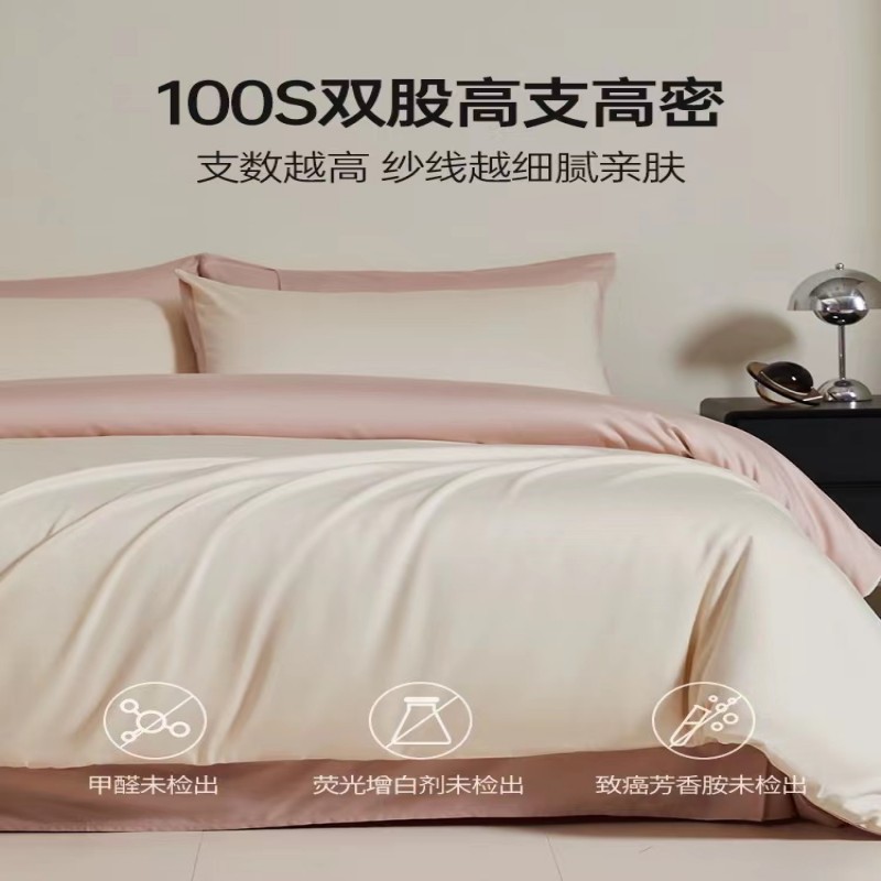 A类100支全棉贡缎长绒棉四件套纯棉床单被套床笠轻奢简约床上用品
