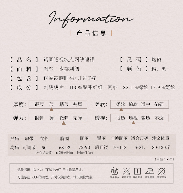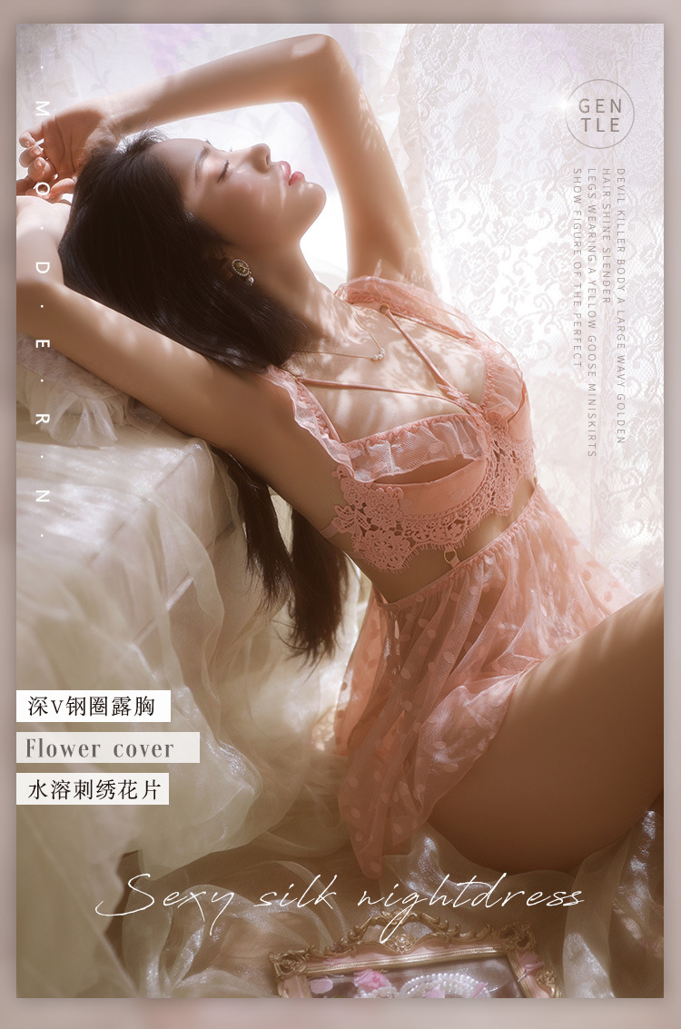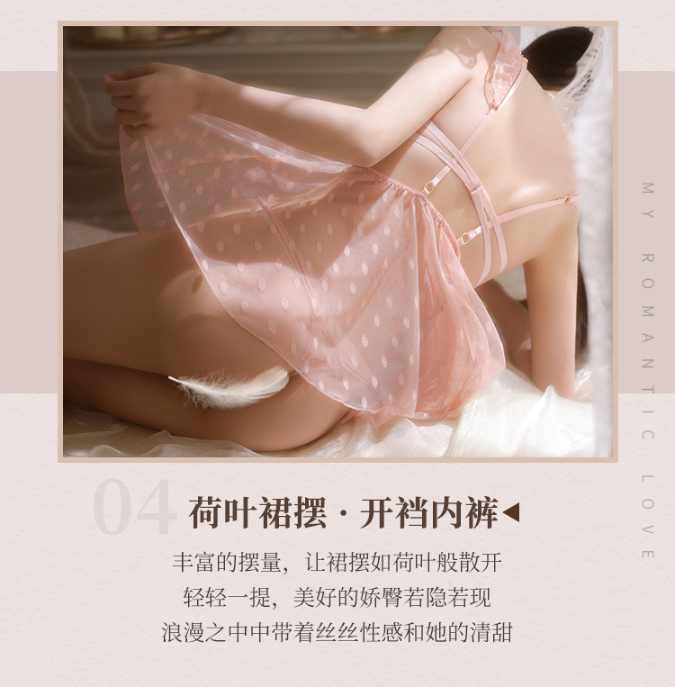 情趣内衣性感纯欲波点透视网纱睡裙露乳钢托小胸开档丁字内裤套装