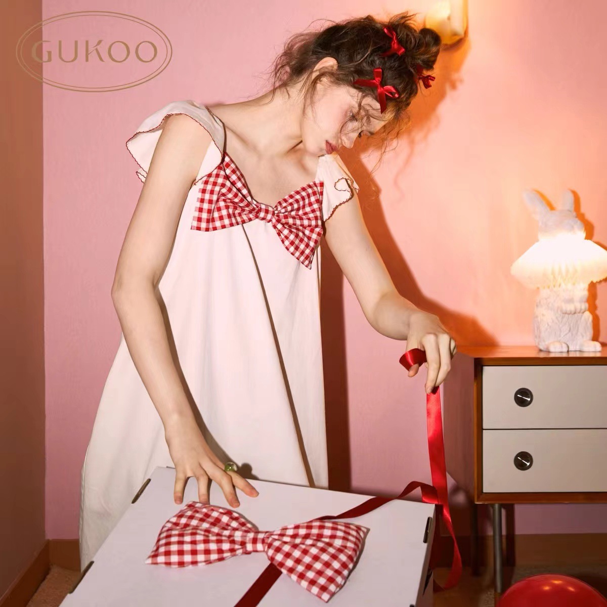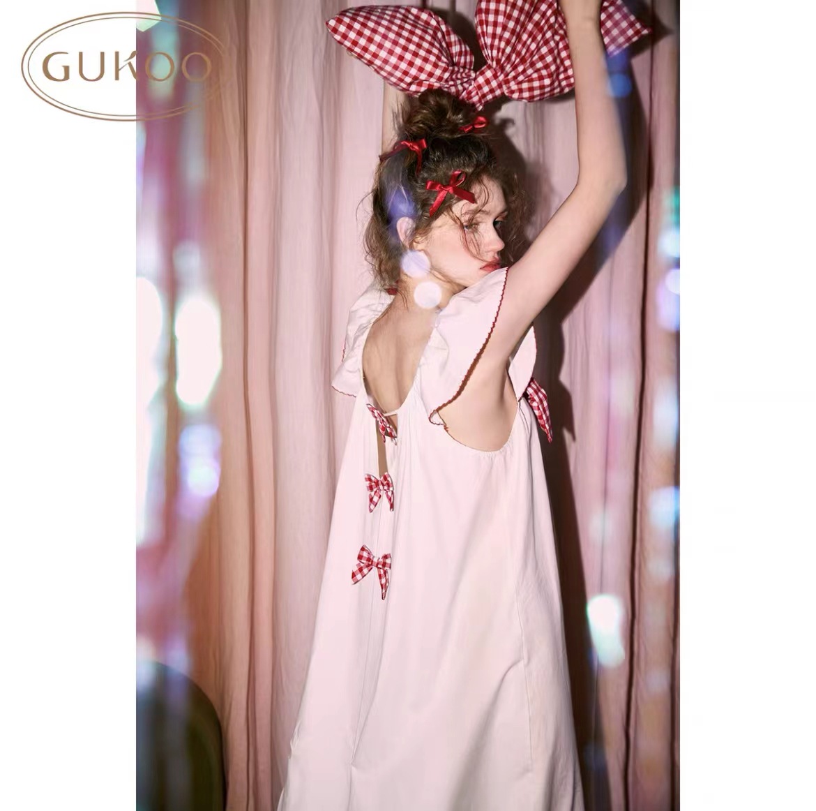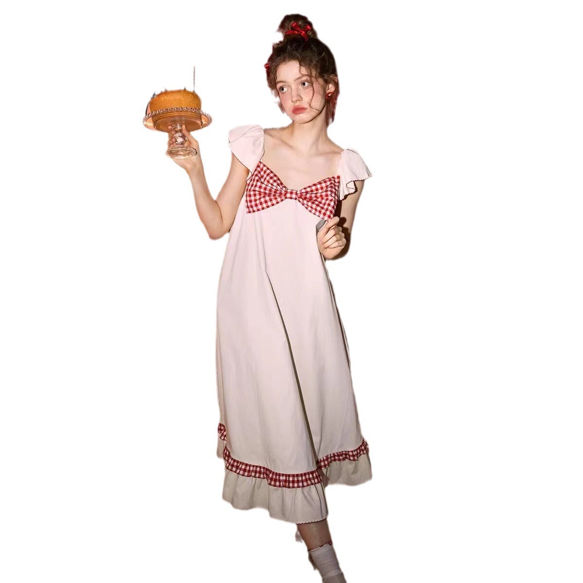 果壳同款睡衣女夏季新款公主风纯欲纯棉无袖法式睡裙蝴蝶结家居服