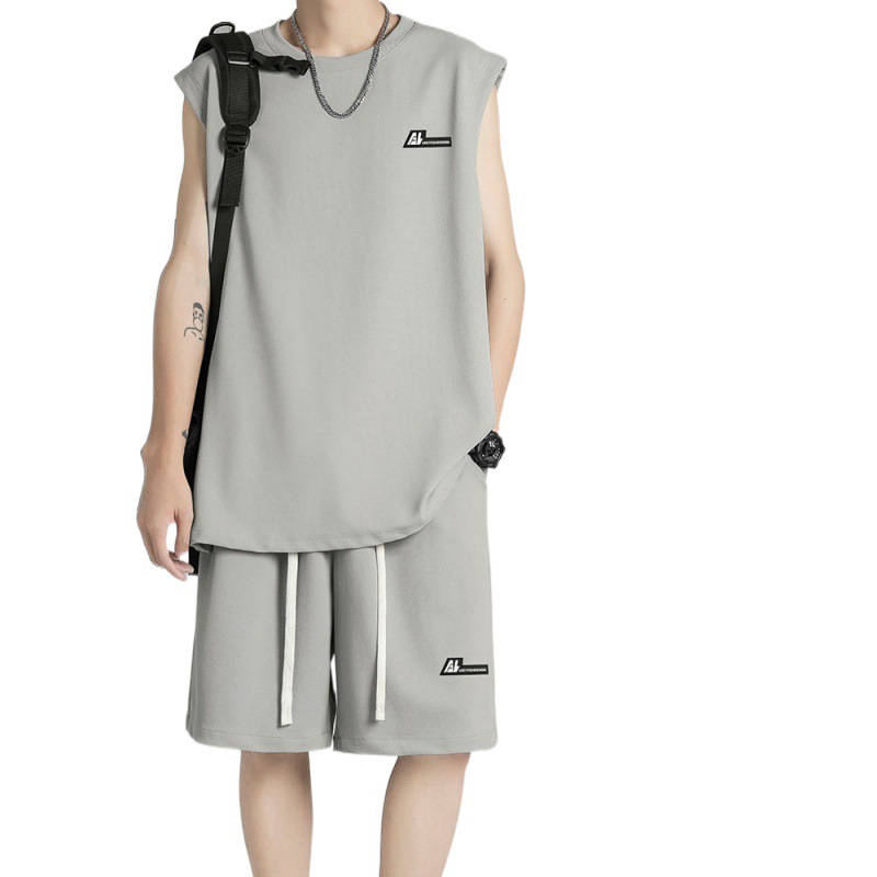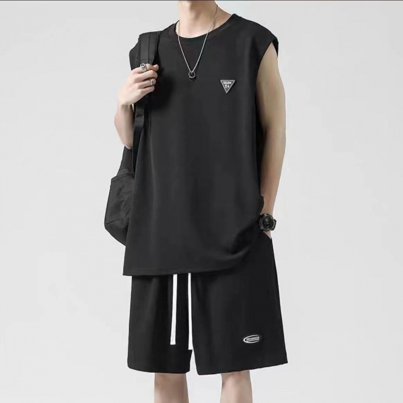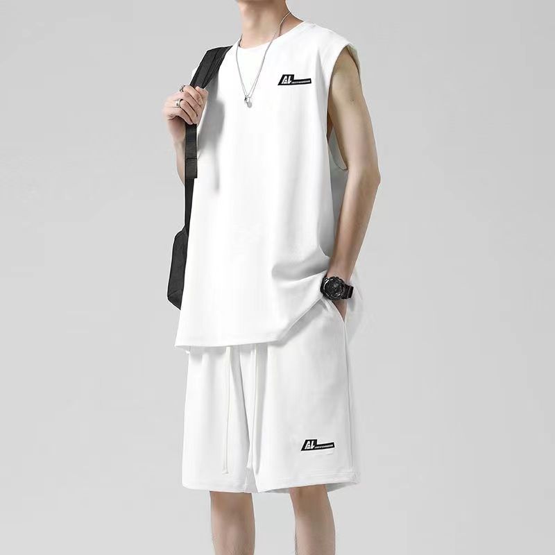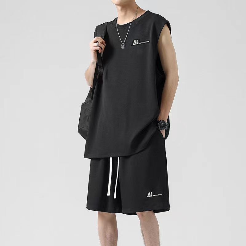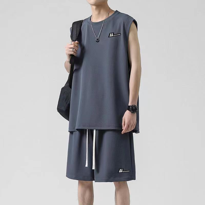 无袖背心男夏季薄款速干篮球坎肩衣服健身运动短袖T恤短裤两件装