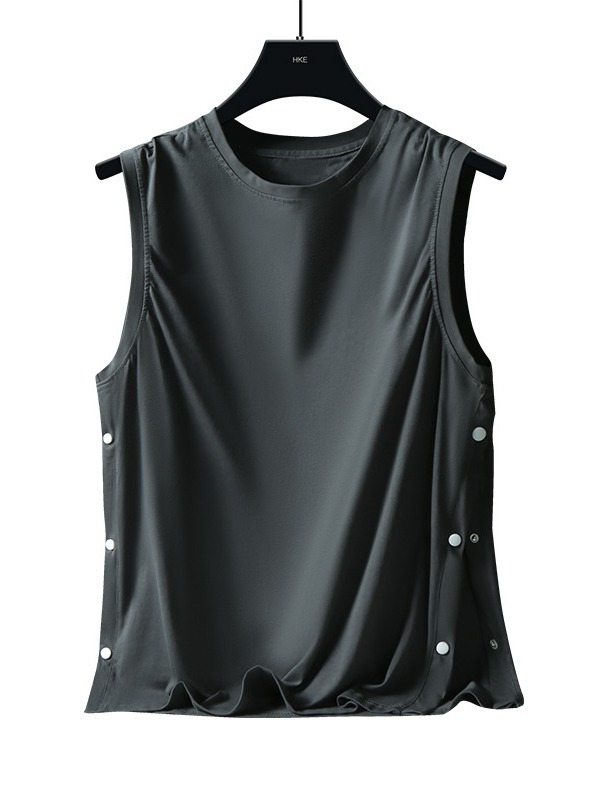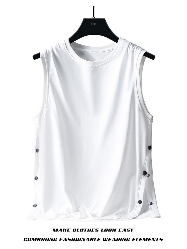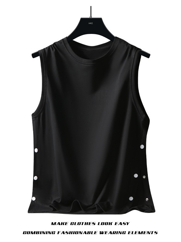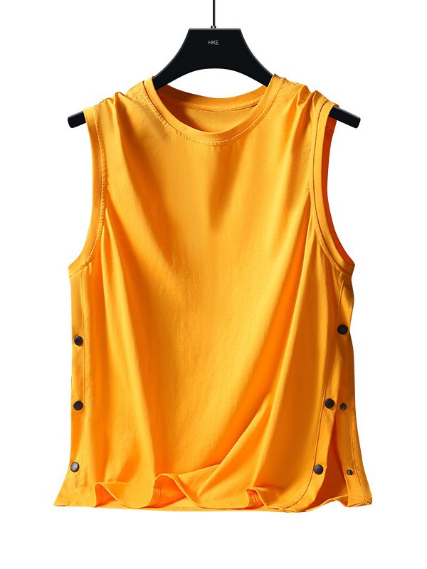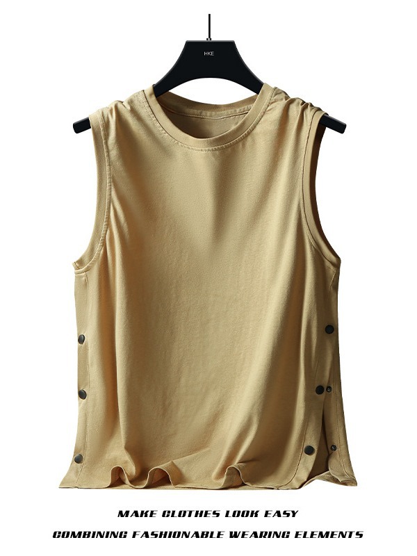 排扣背心男夏季新品宽松圆领无袖T恤无100%纯棉双纱200克坎肩上衣