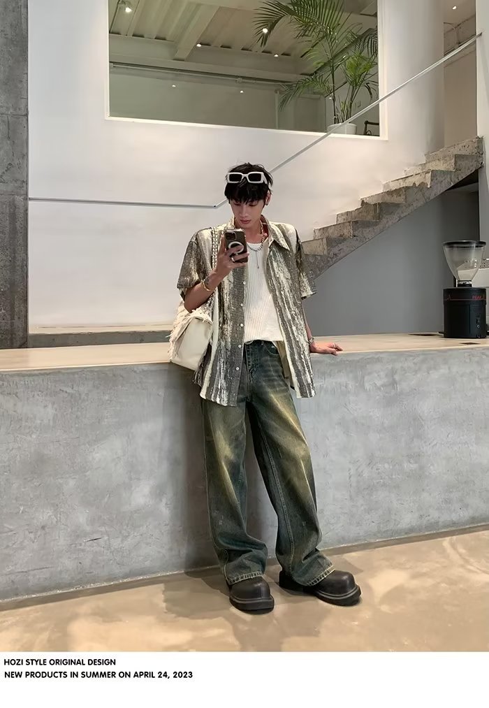 日系复古水洗宽松牛仔裤男秋冬季百搭萝卜裤大码锥形跨裤哈伦裤潮