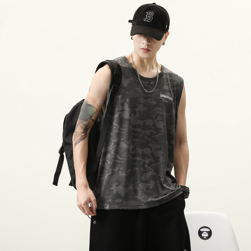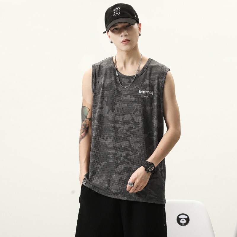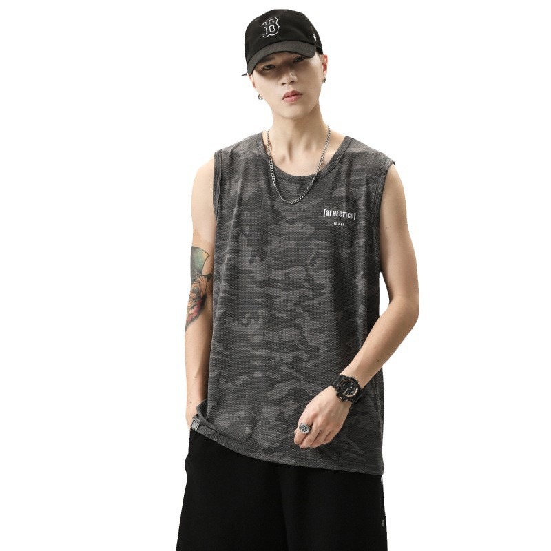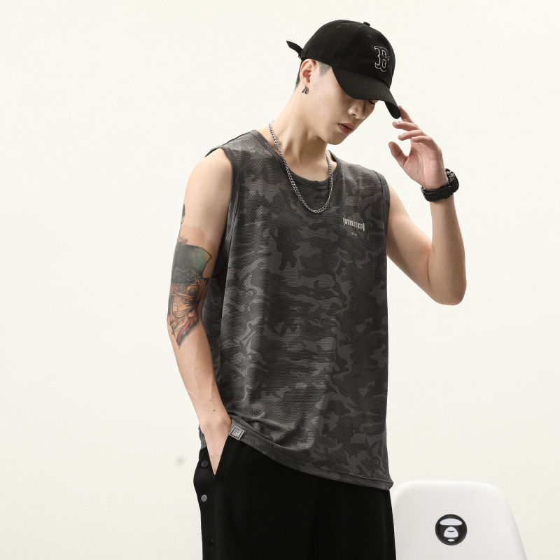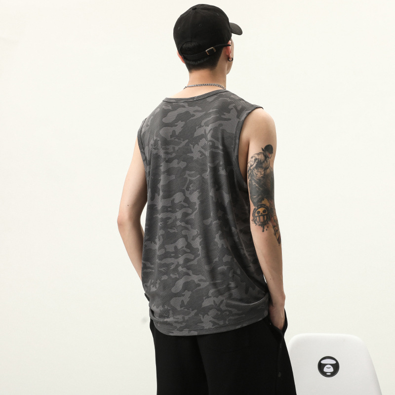 迷彩背心男无袖冰丝夏季运动健身上衣宽松大码休闲胖子坎肩t恤潮