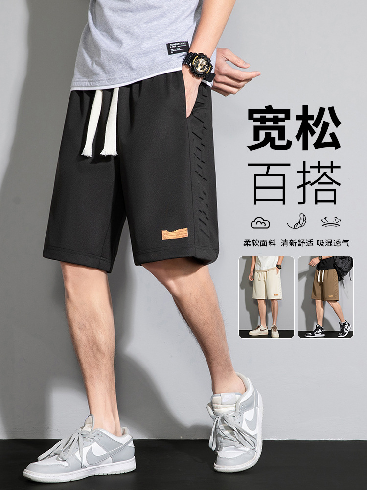 华港骆驼短裤男士夏季重磅美式潮牌休闲宽松针织五分裤运动卫裤