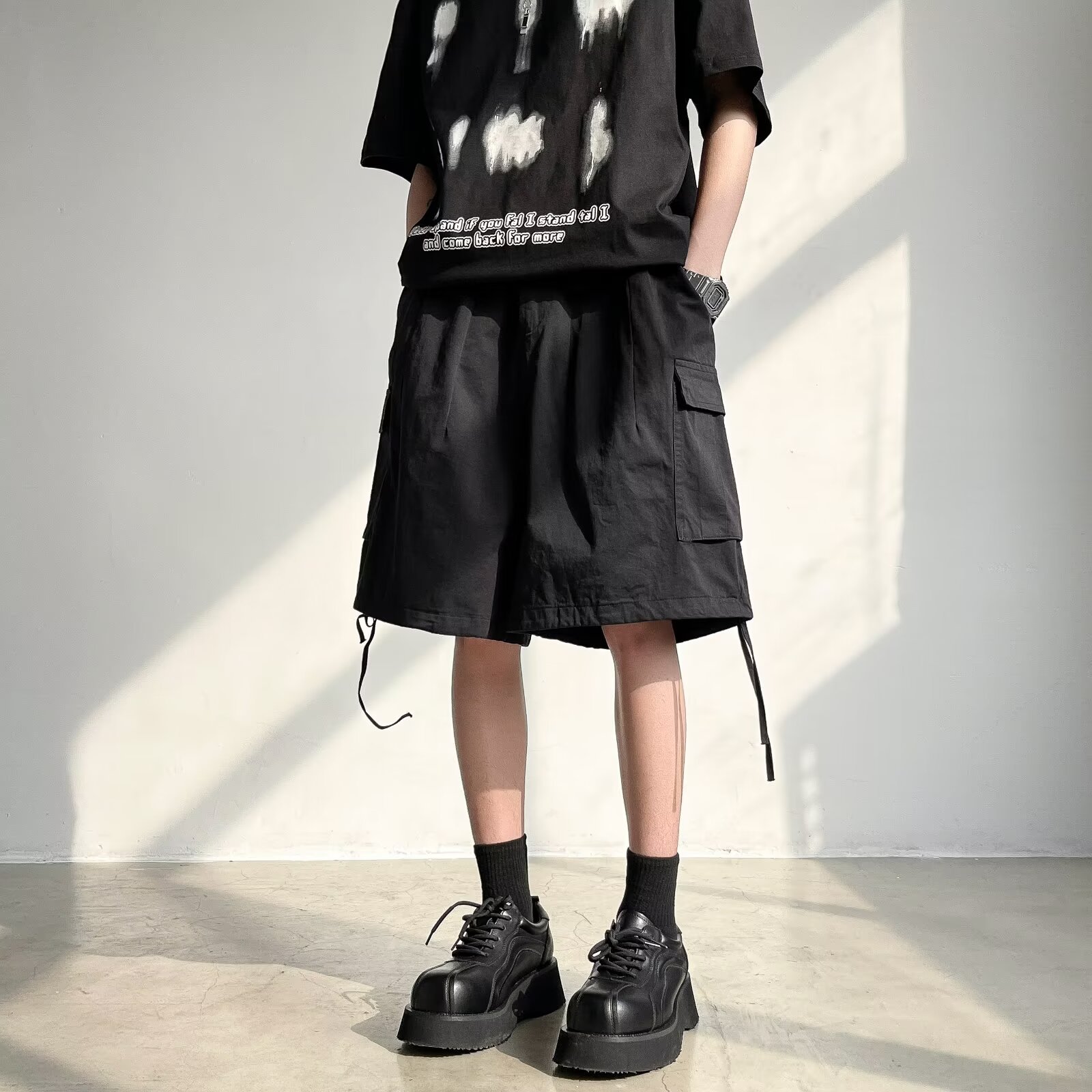 年夏季新款特色裤男高街纯色短裤潮流宽松嘻哈休闲裤百搭
