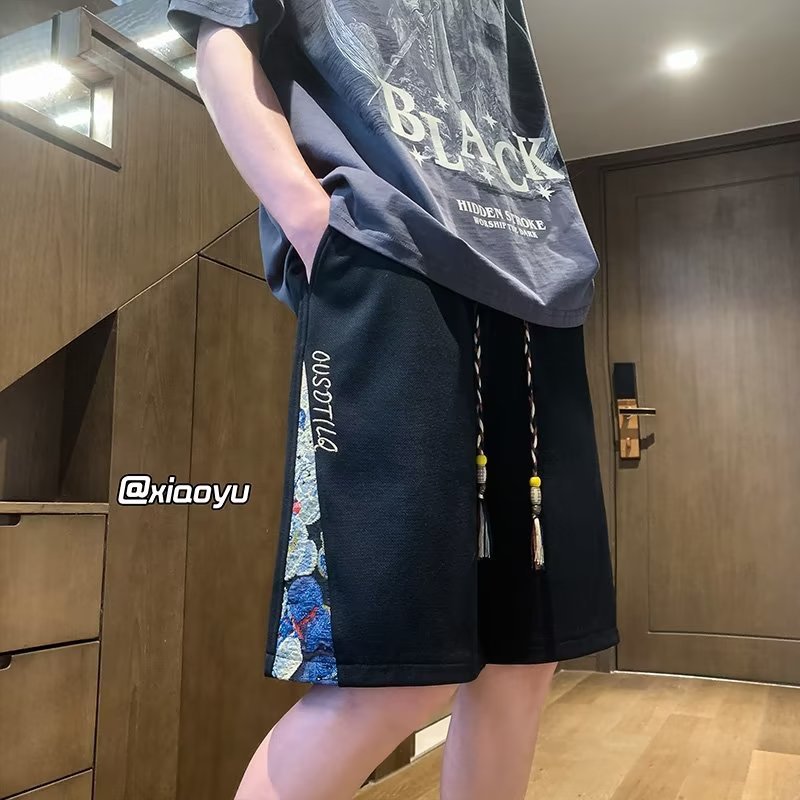 国潮高街刺绣休闲短裤男夏季新款潮牌设计感大码运动五分裤潮