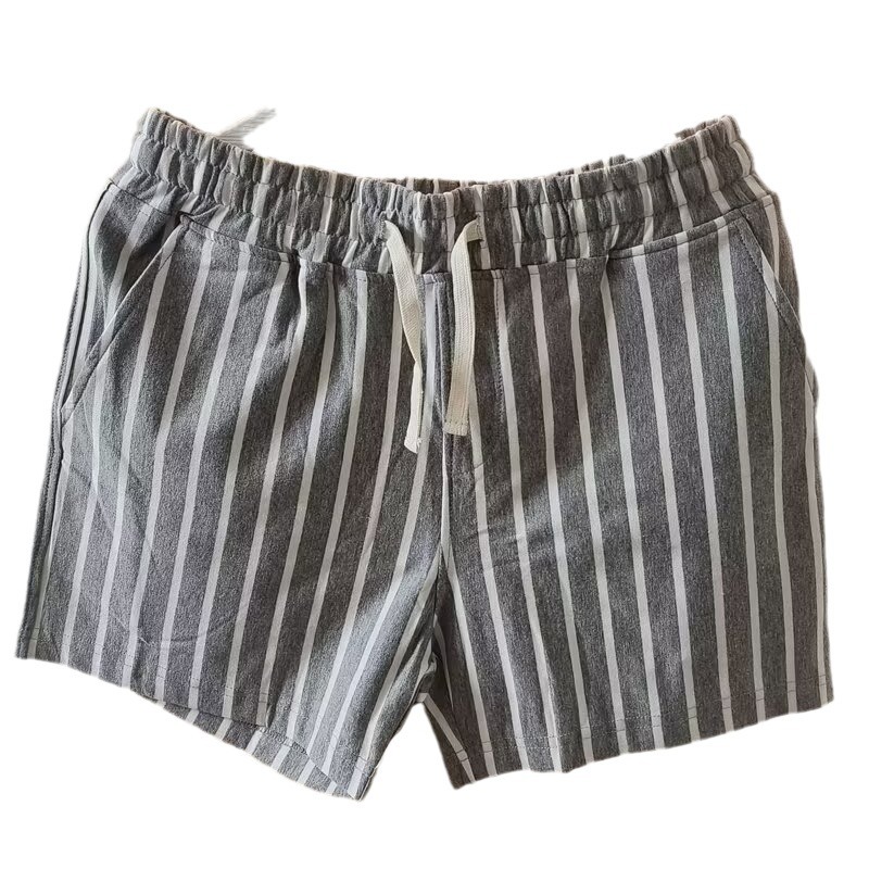 夏季日系薄款条纹休闲外穿短裤男士直筒运动五分阔腿裤子潮