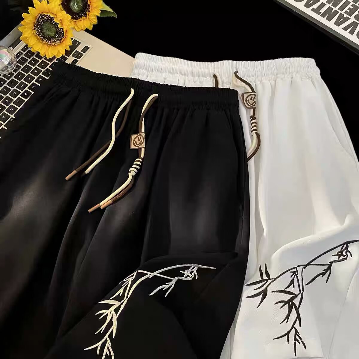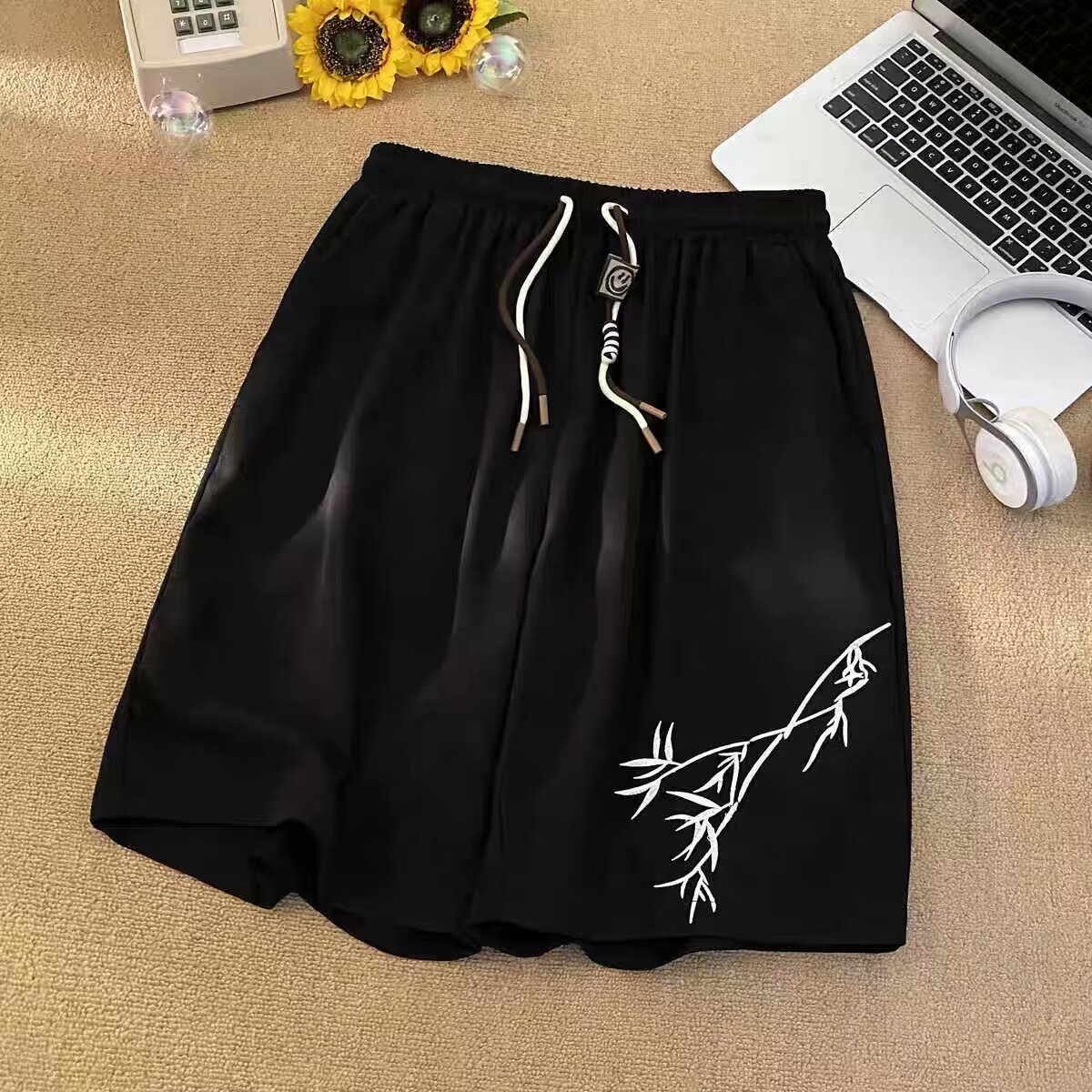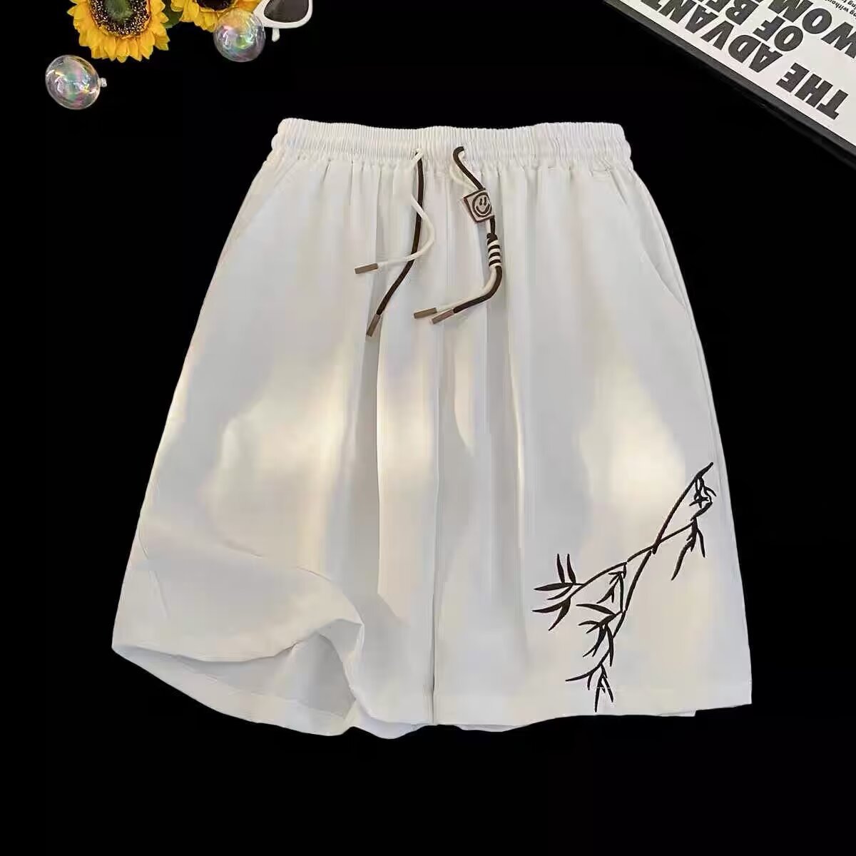 夏季潮流国风新中式裤子休闲短裤运动竹子潮牌宽松直筒五分裤中裤