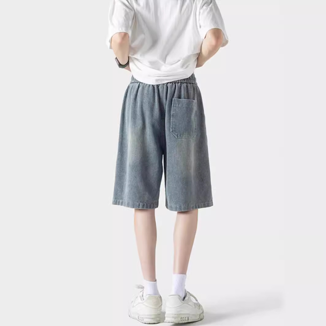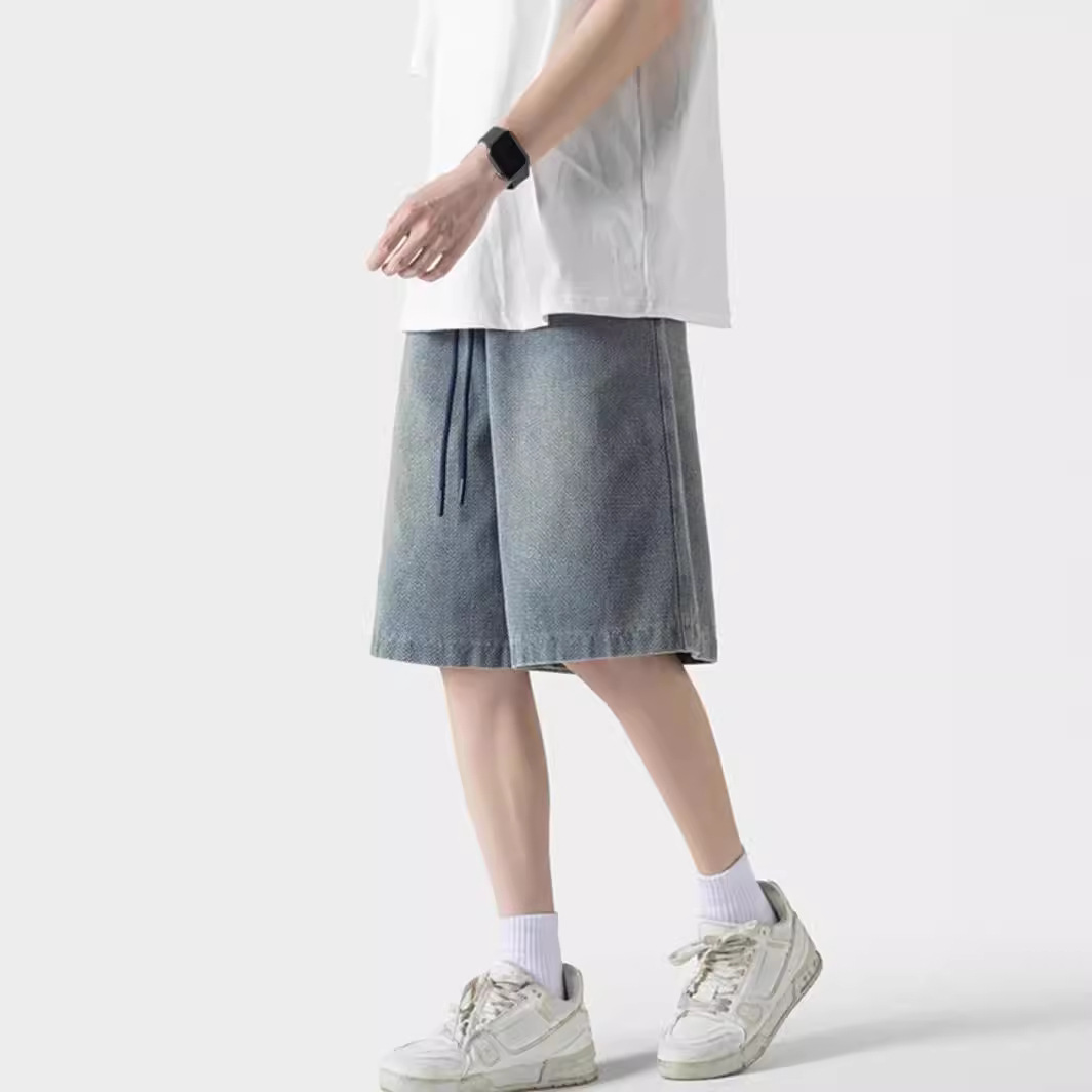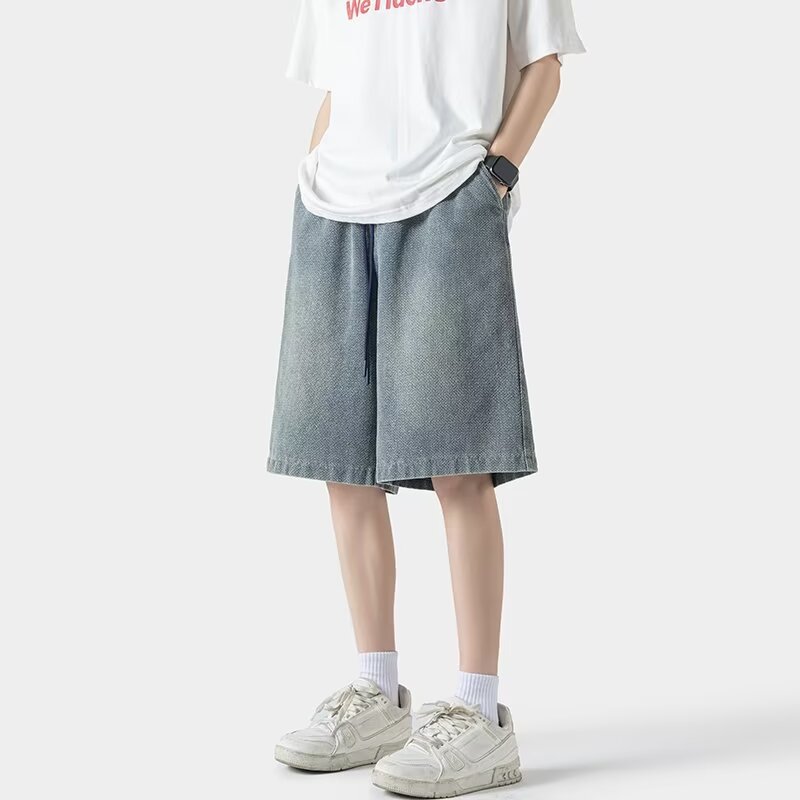 美式抽绳星空纹牛仔短裤男士夏季新款休闲宽松五分裤高街潮牌