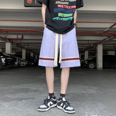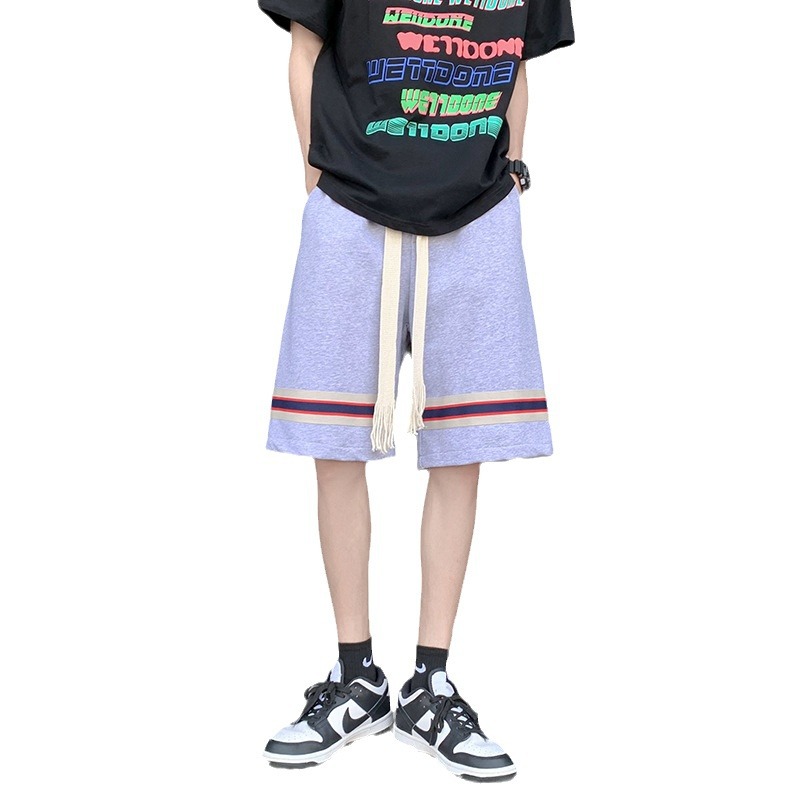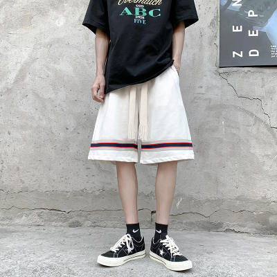 条纹休闲五分裤男抽绳宽松百搭外穿运动短裤帅气oversize阔腿中裤
