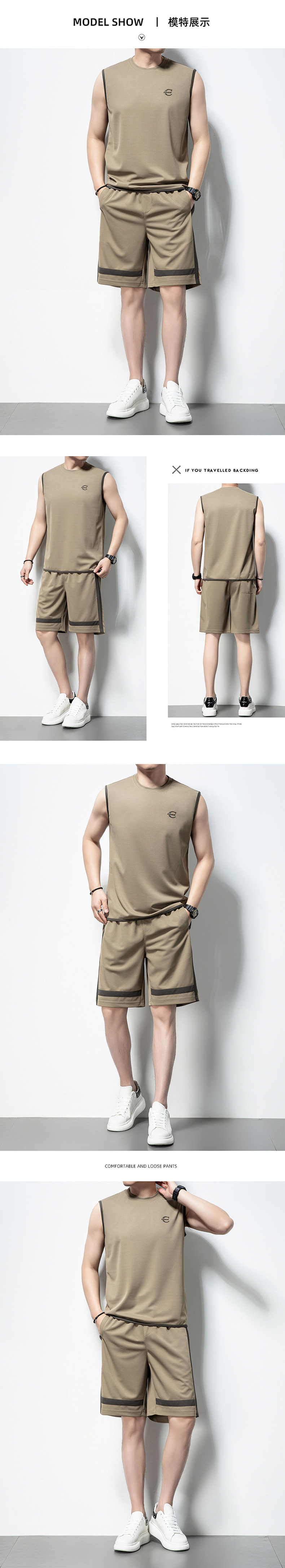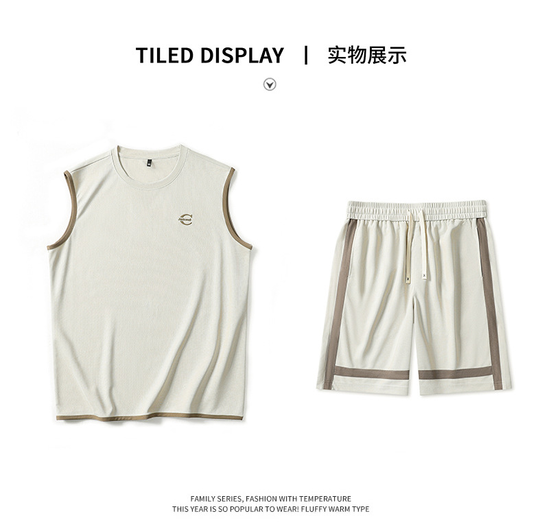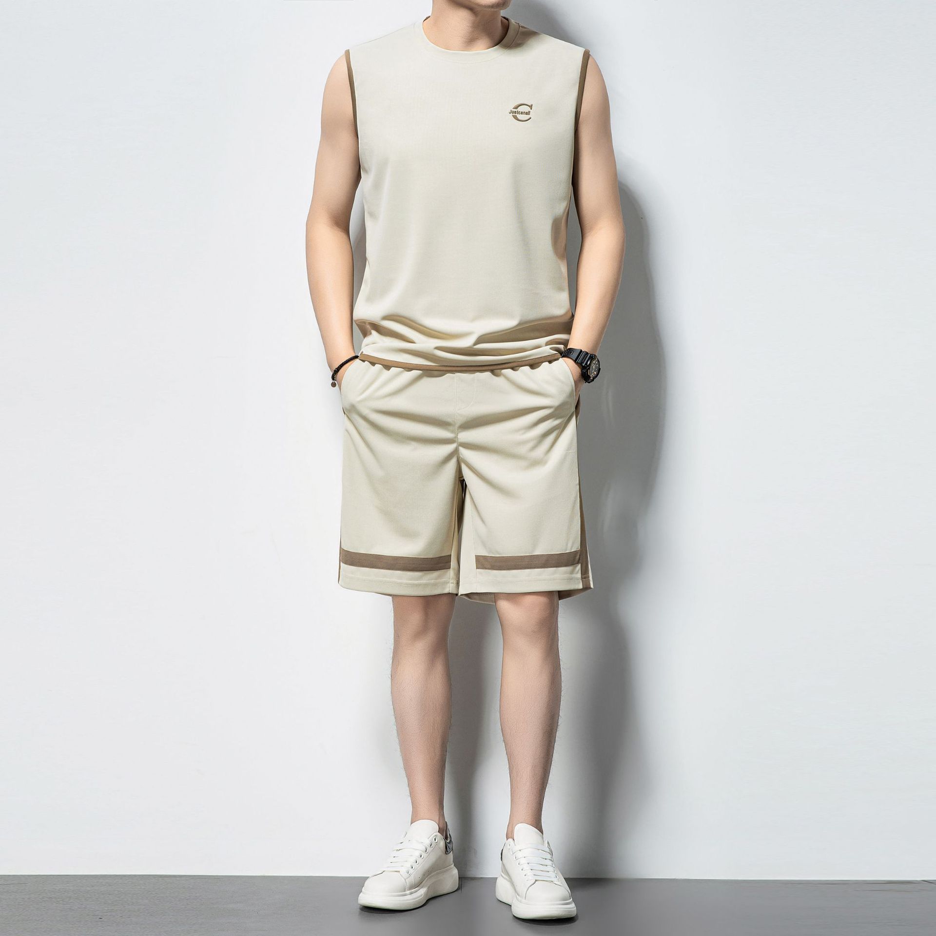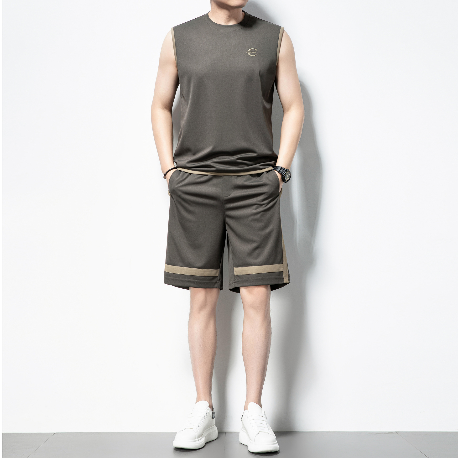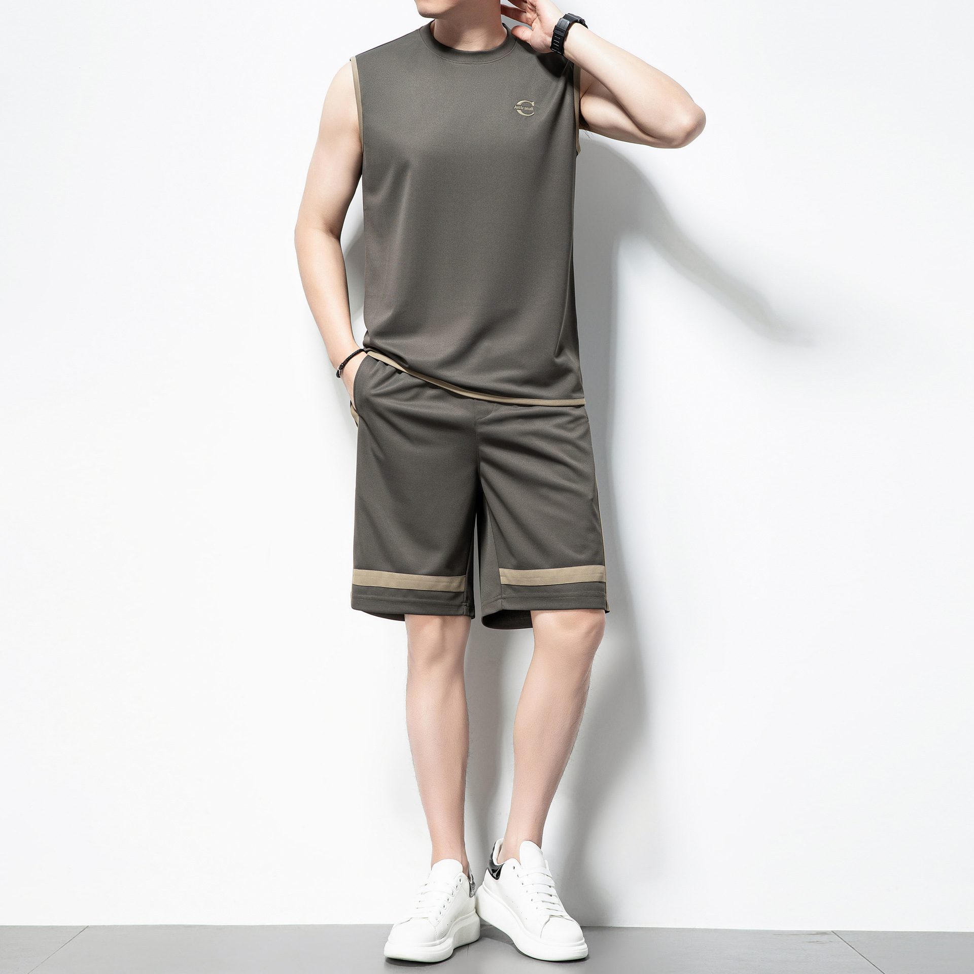 夏季新款男式休闲运动套装时尚潮流中青年男士圆领无袖短裤两件套
