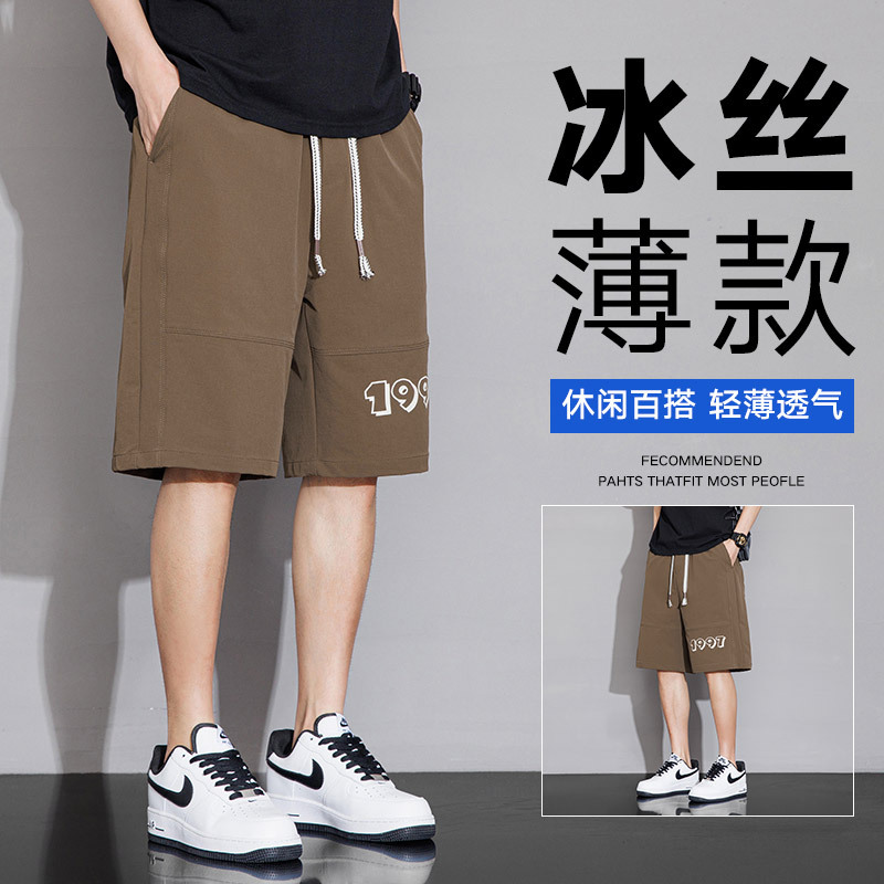 夏季短裤男士休闲裤潮流夏装宽松潮牌大裤衩运动外穿冰丝五分裤子