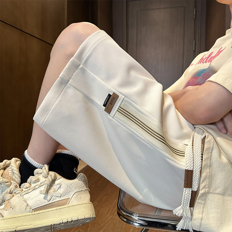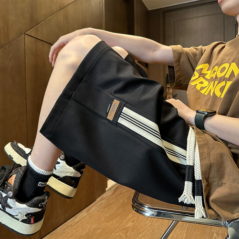 美式休闲短裤男士夏季潮牌运动篮球中裤条纹宽松大码阔腿五分裤子