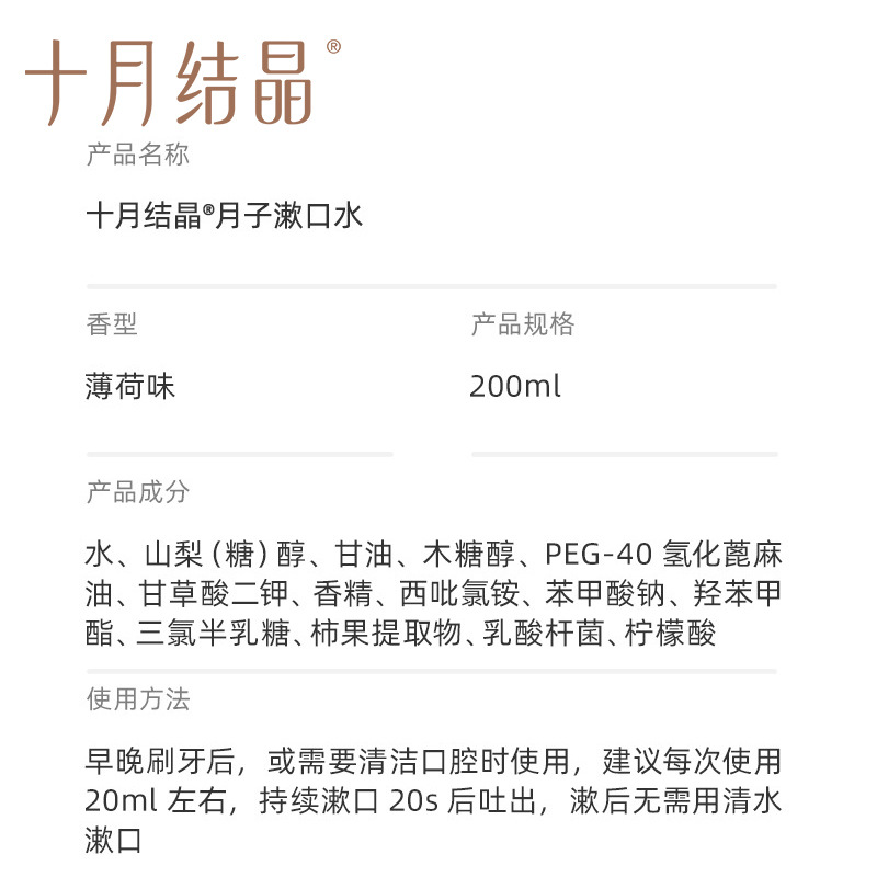 十月结晶准孕产妇漱口水便携装200ml清新口气月子漱口水