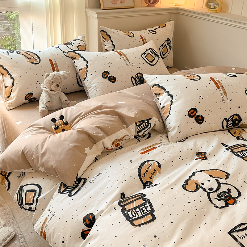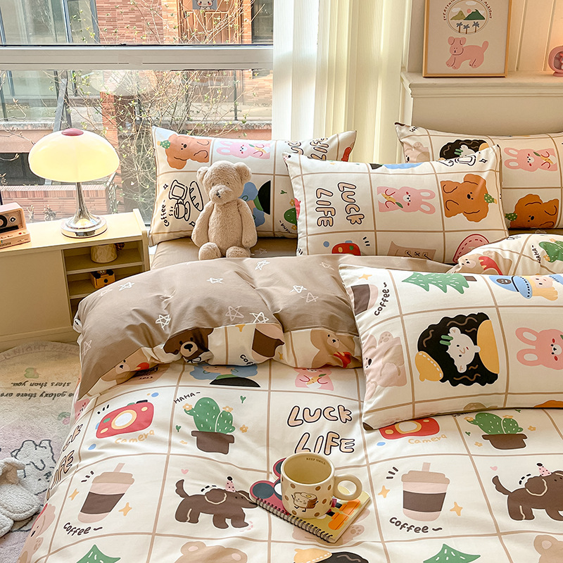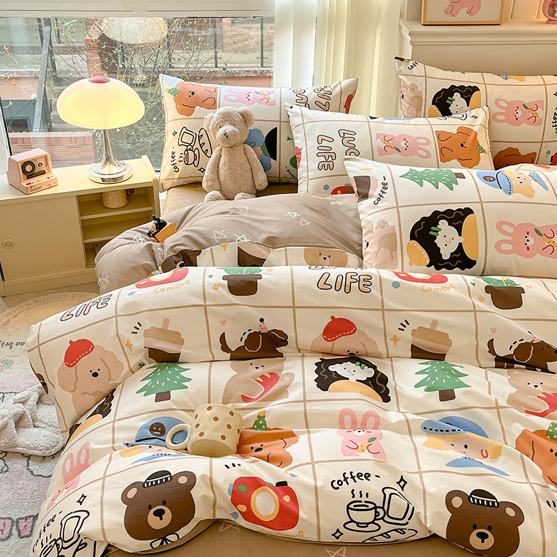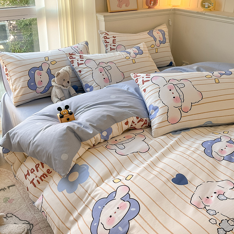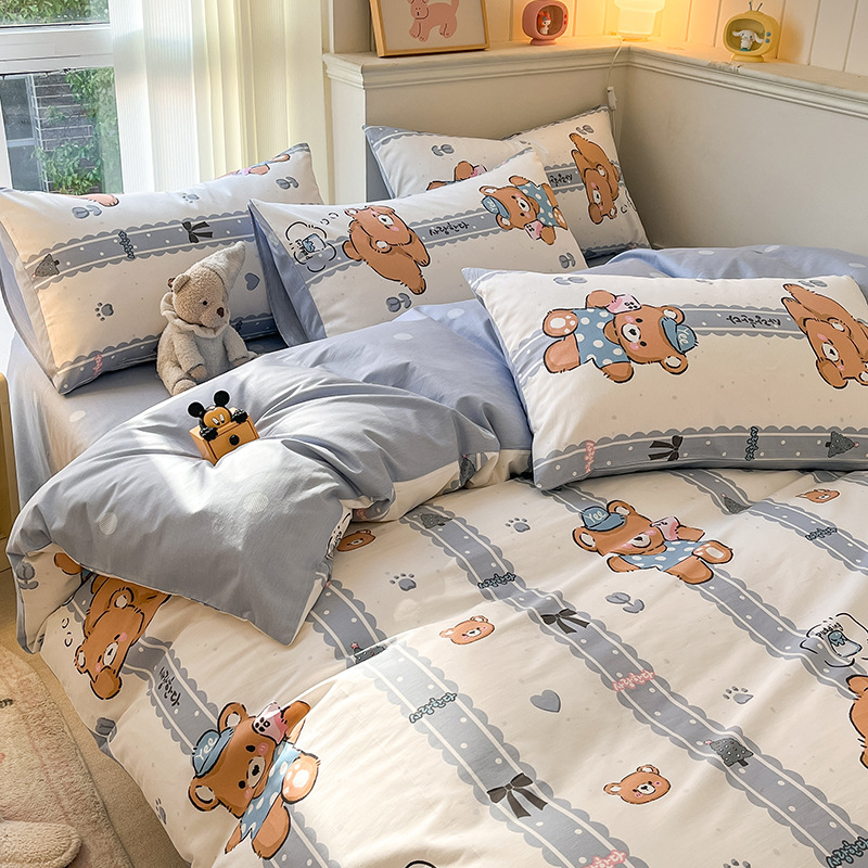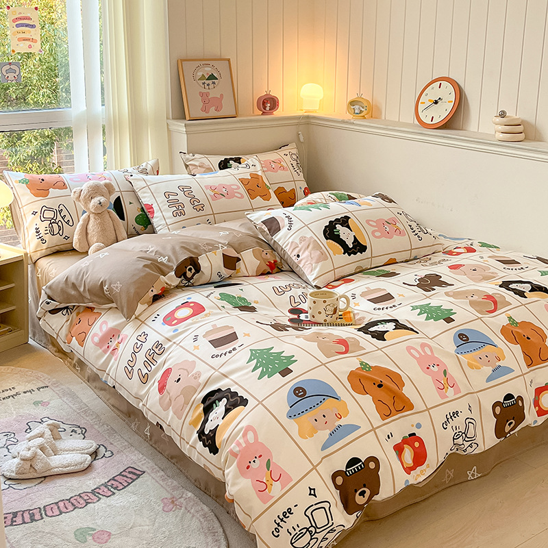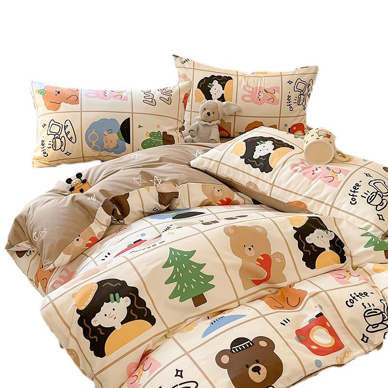 全棉小清新印花床上四件套纯棉卡通床单被套床笠三件套床品