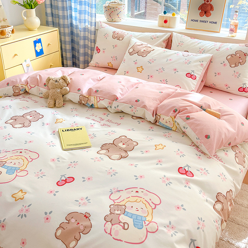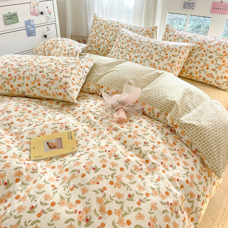 春季新款全棉床上四件套小清新纯棉床单人被套学生宿舍三件套床品