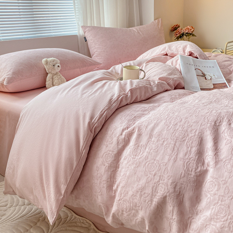 60S全棉三层纱水洗棉四件套裸睡纯棉被套床单床笠新款床品