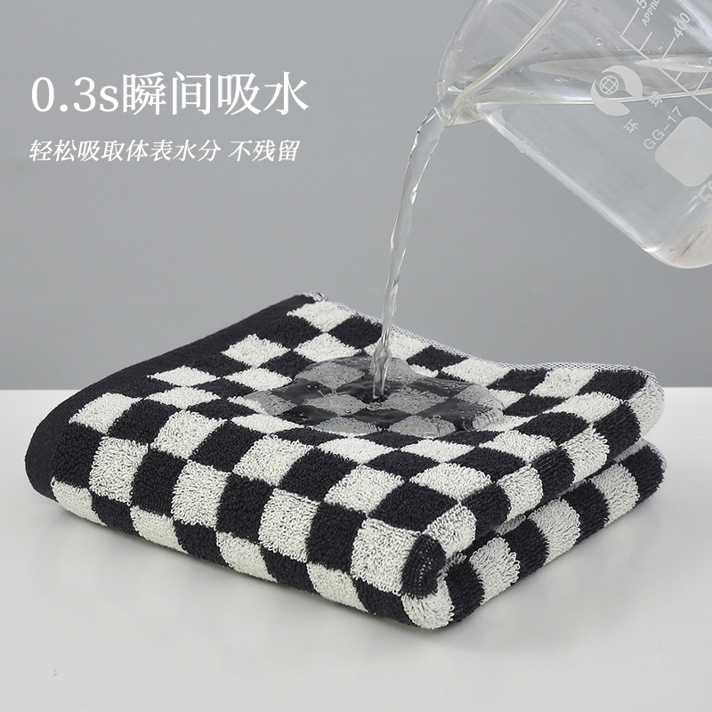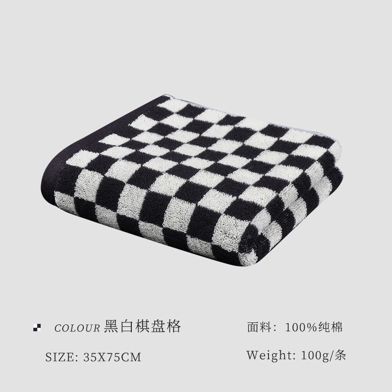 【35*75cm 100克】现货家用棋盘格纯棉毛巾A类吸水千鸟格洗脸毛巾