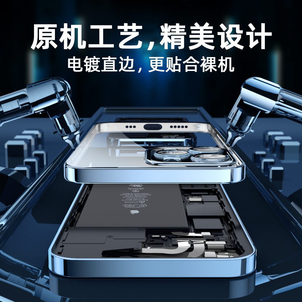 适用iPhone15手机壳电镀透明TPU苹果14自带镜头膜XSmax防摔保护套
