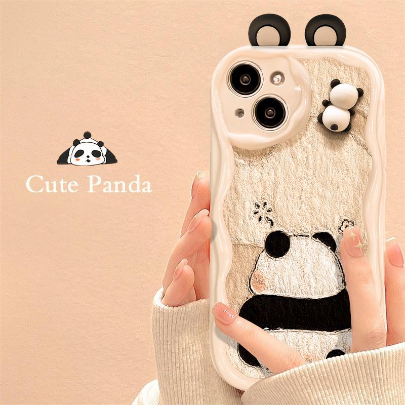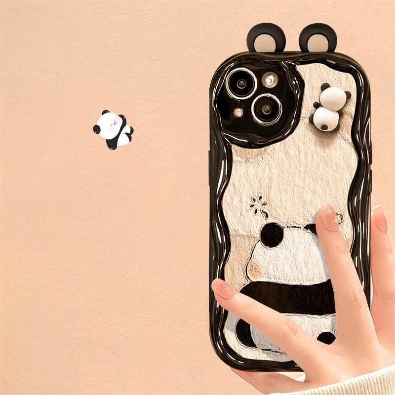 适用苹果14promax手机壳iPhone15/13立体熊猫公仔11/12mini防摔xs