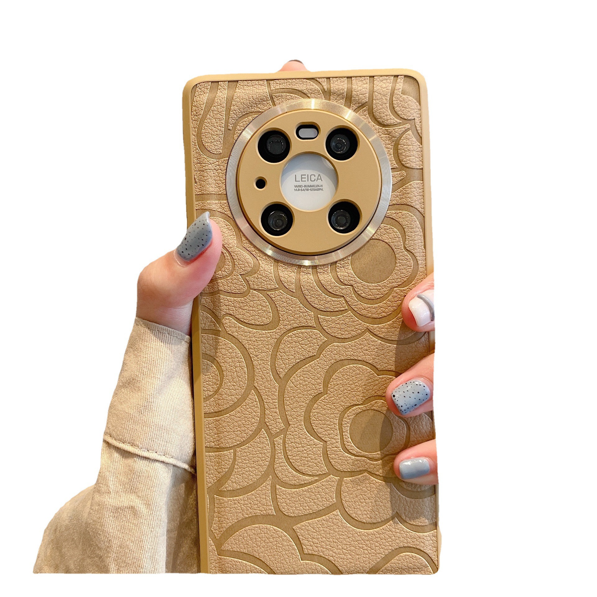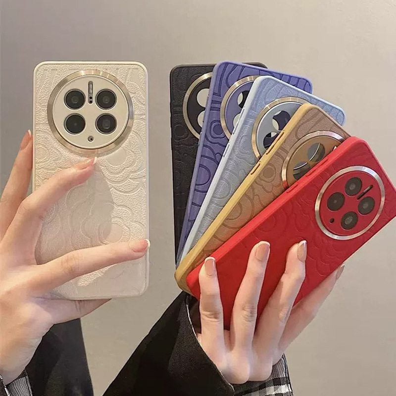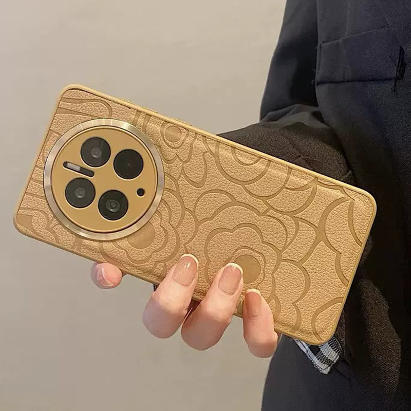 适用华为Mate60pro+皮纹手机壳山茶花Nova12全包金属镜头Magic6套