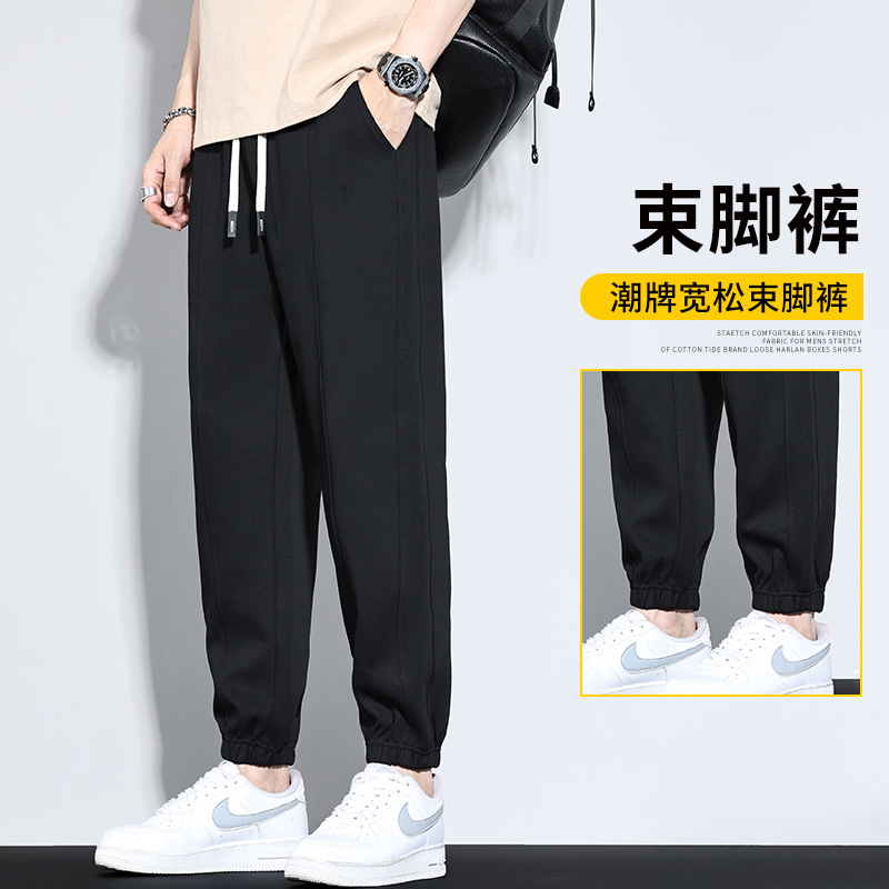 春季新品男士卫裤束脚哈伦针织裤宽松舒适百搭耐磨透气休闲裤