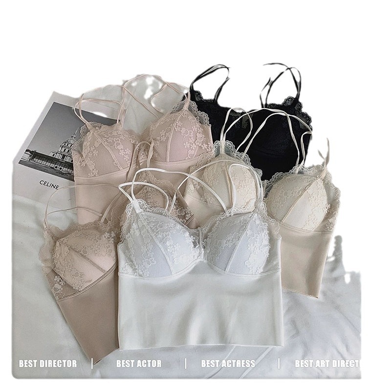 复古蕾丝冰丝交叉吊带背心大U美背女自带胸垫外穿打底抹胸