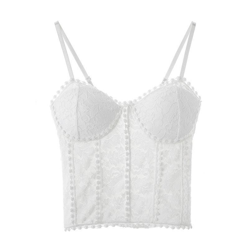 蕾丝花边镂空打底美背内搭外穿吊带背心女夏韩版带胸垫抹胸上衣女