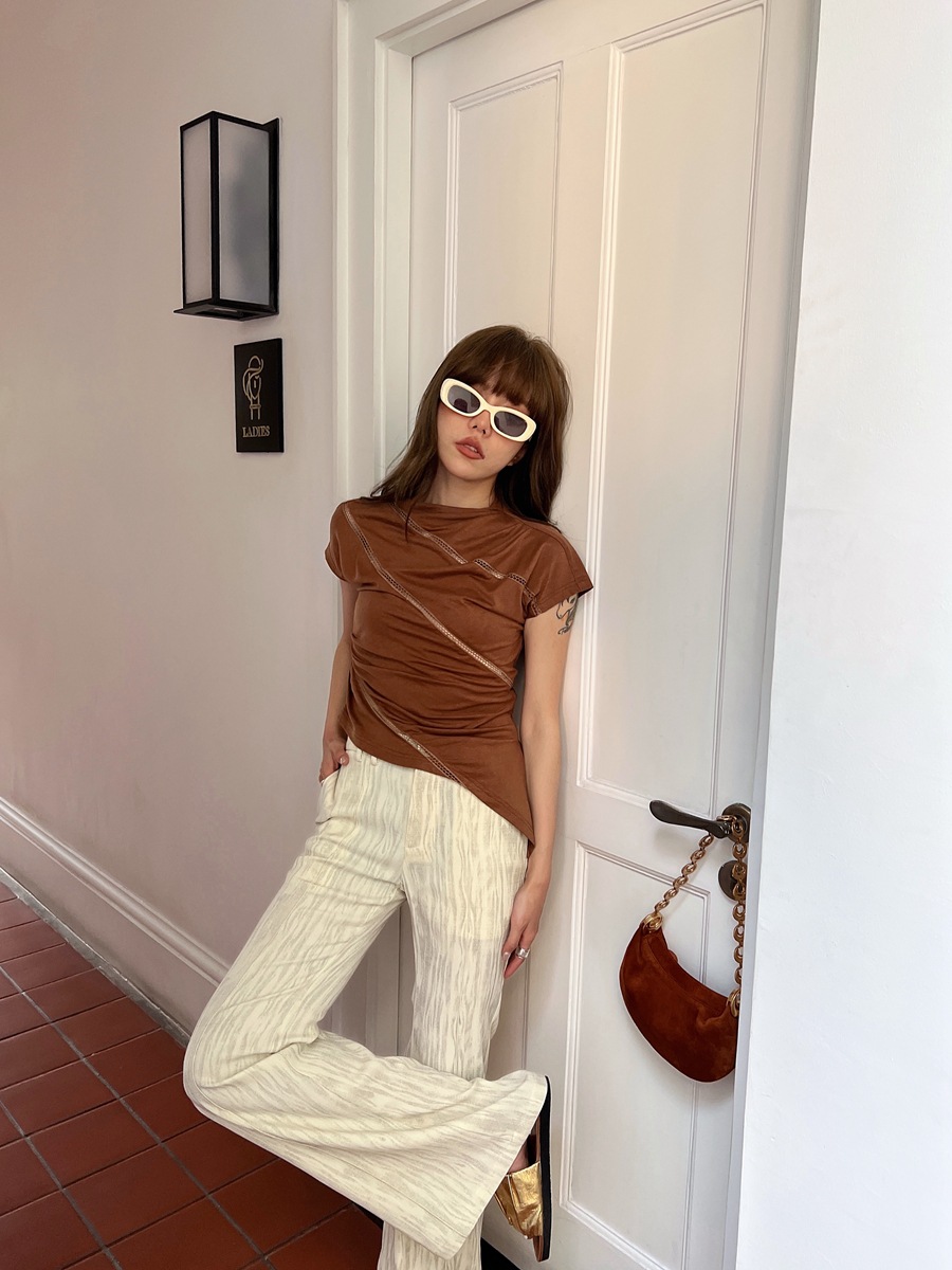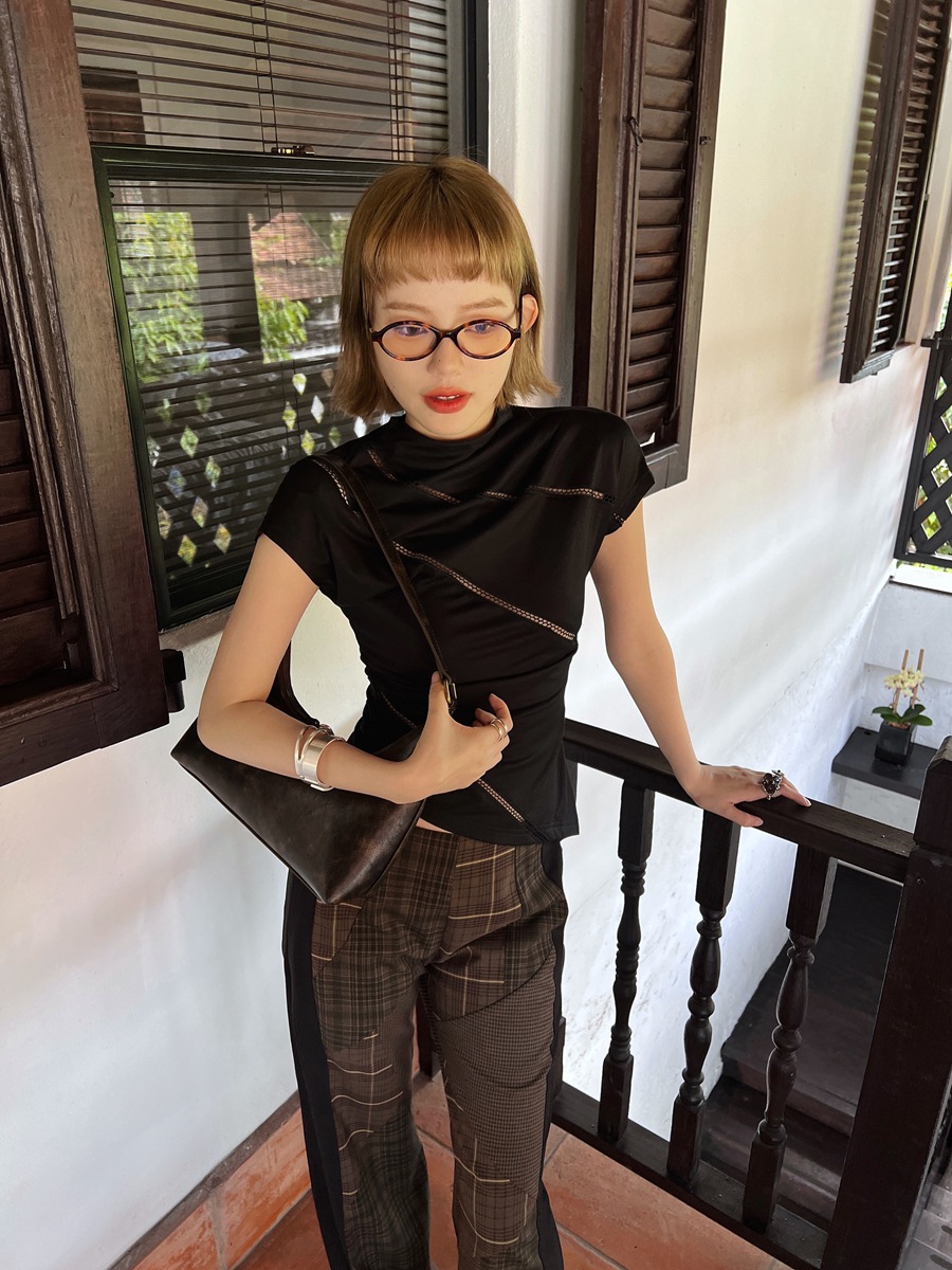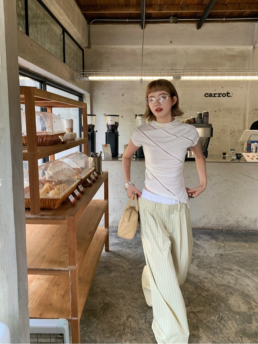 不规则设计感短袖t恤女夏季休闲修身打底短款上衣