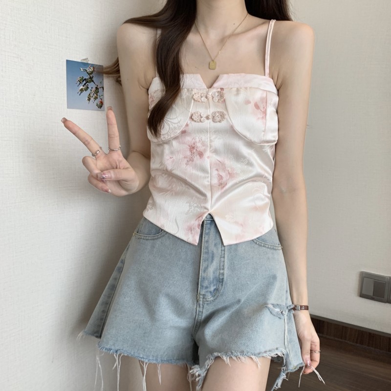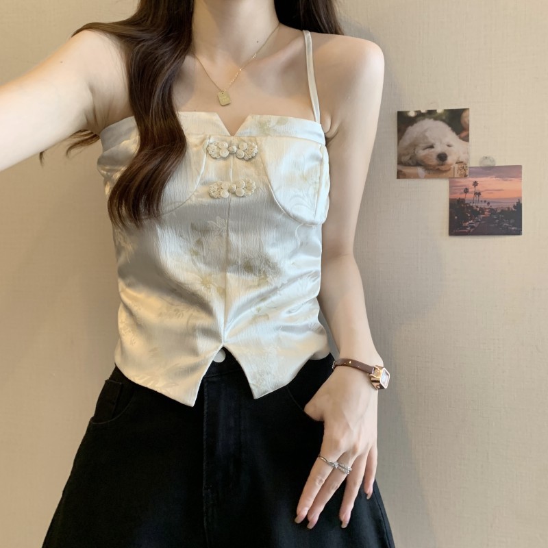 新款中式盘扣吊带小背心女外穿夏季国风设计感辣妹上衣女士