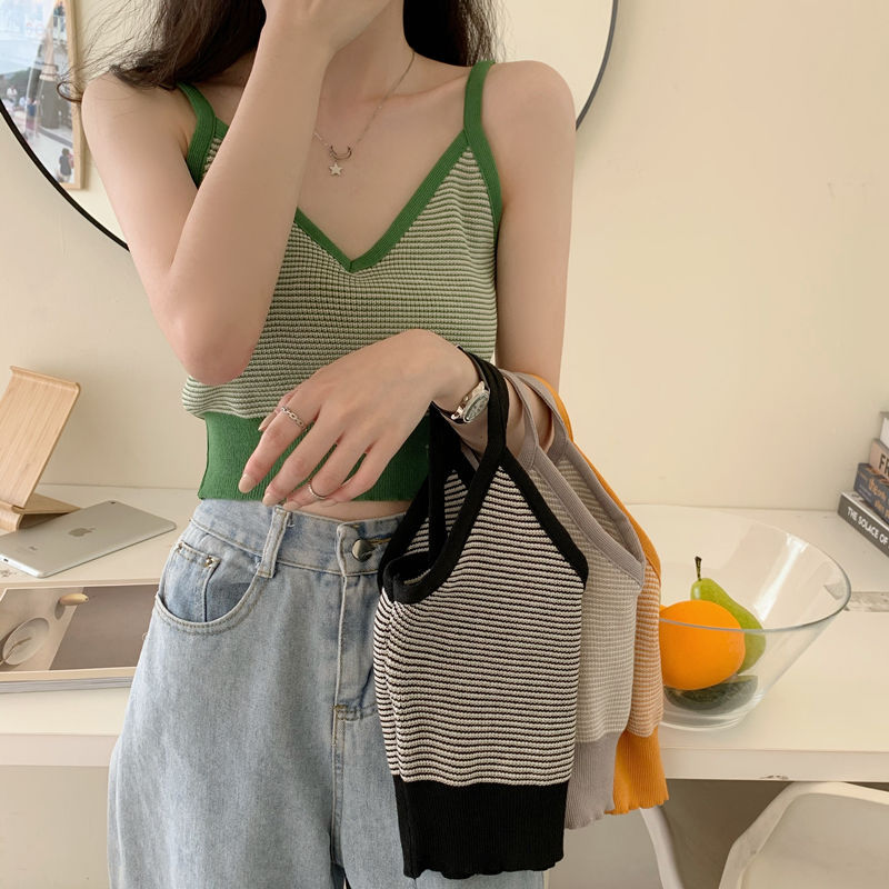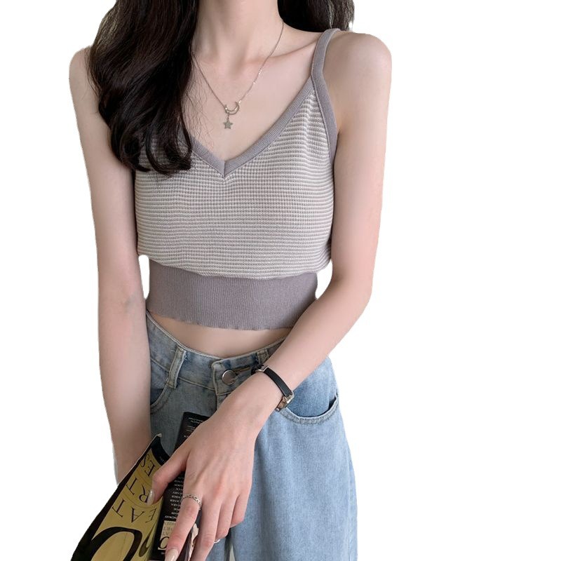 针织背心女外穿夏季美背v领设计感小众内搭短款无袖小吊带上衣潮
