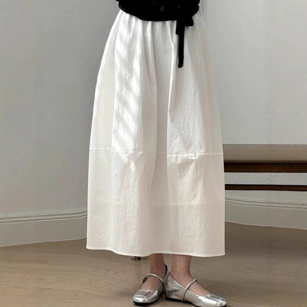 白色花苞半身裙女春夏韩系百搭慵懒风松紧高腰中长款显瘦灯笼裙子